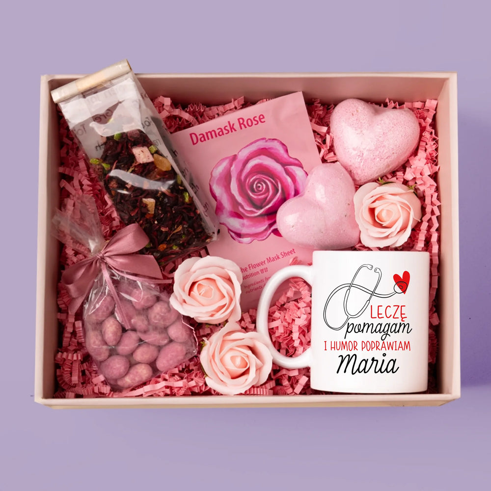 Imię i Podpis: Leczę Pomagam - Zestaw prezentowy z kubkiem i różanym spa