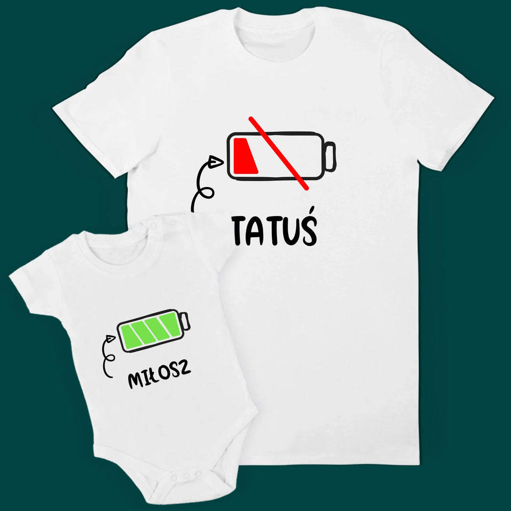 Imię i Podpis: Low Battery - Zestaw koszulka męska + body