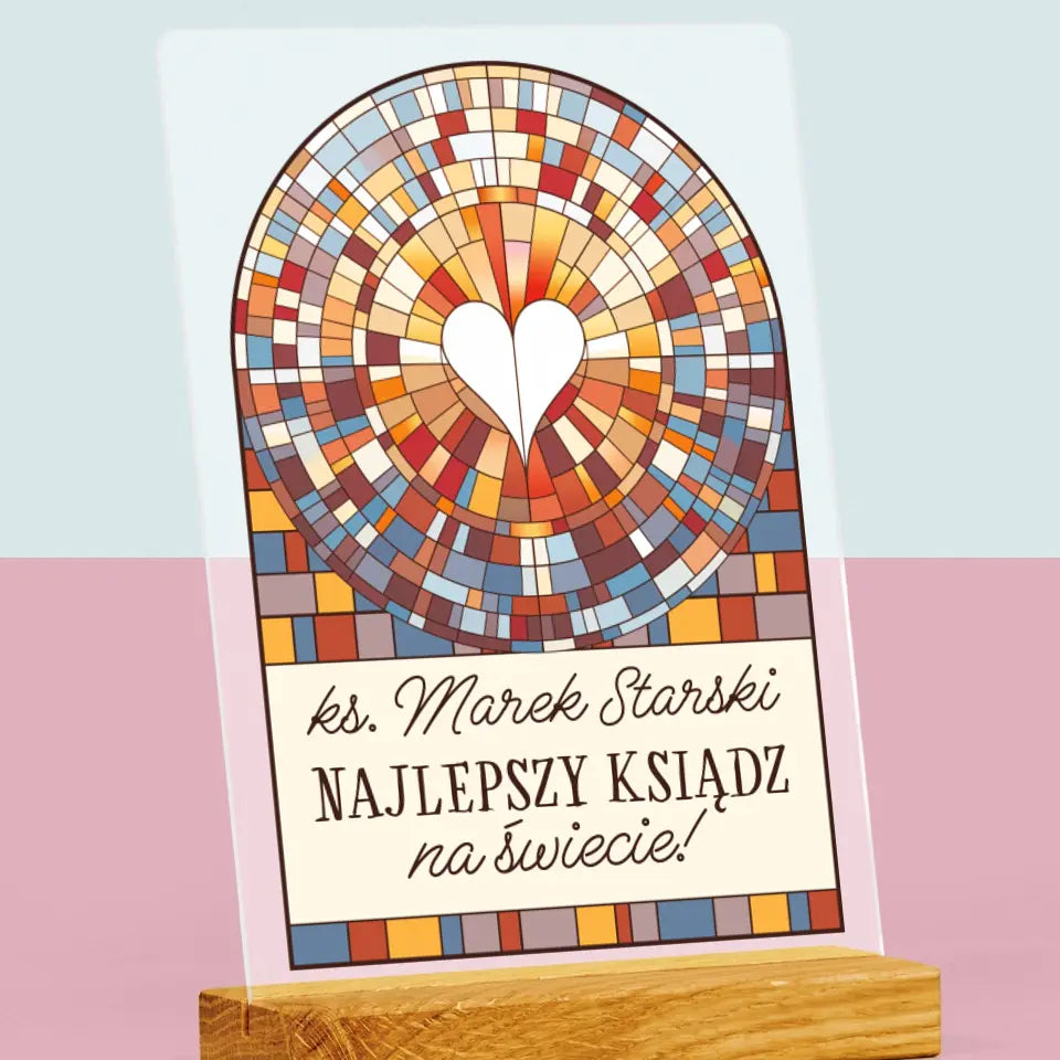 Imię i Podpis: Najlepszy Ksiądz Na Świecie - Wydruk na szkle akrylowym