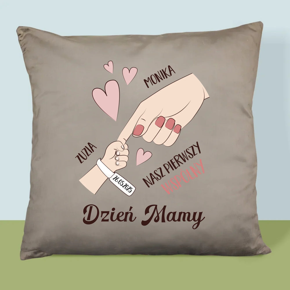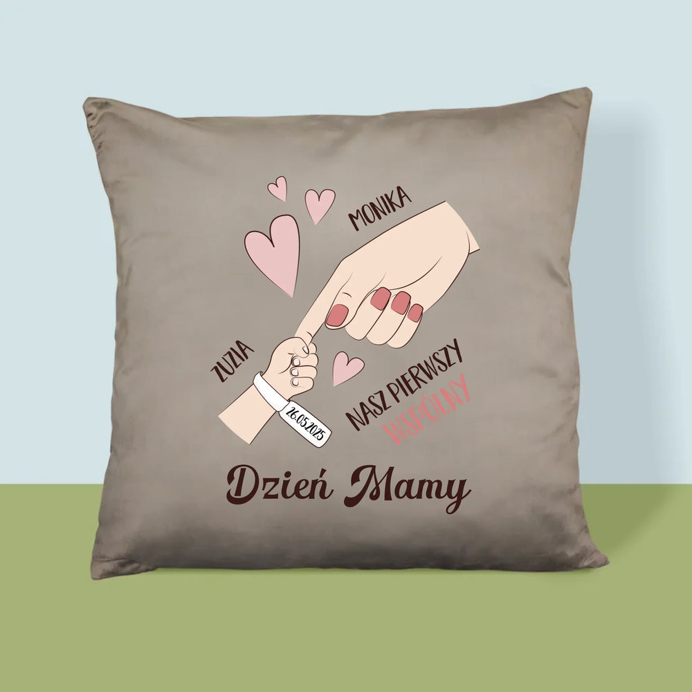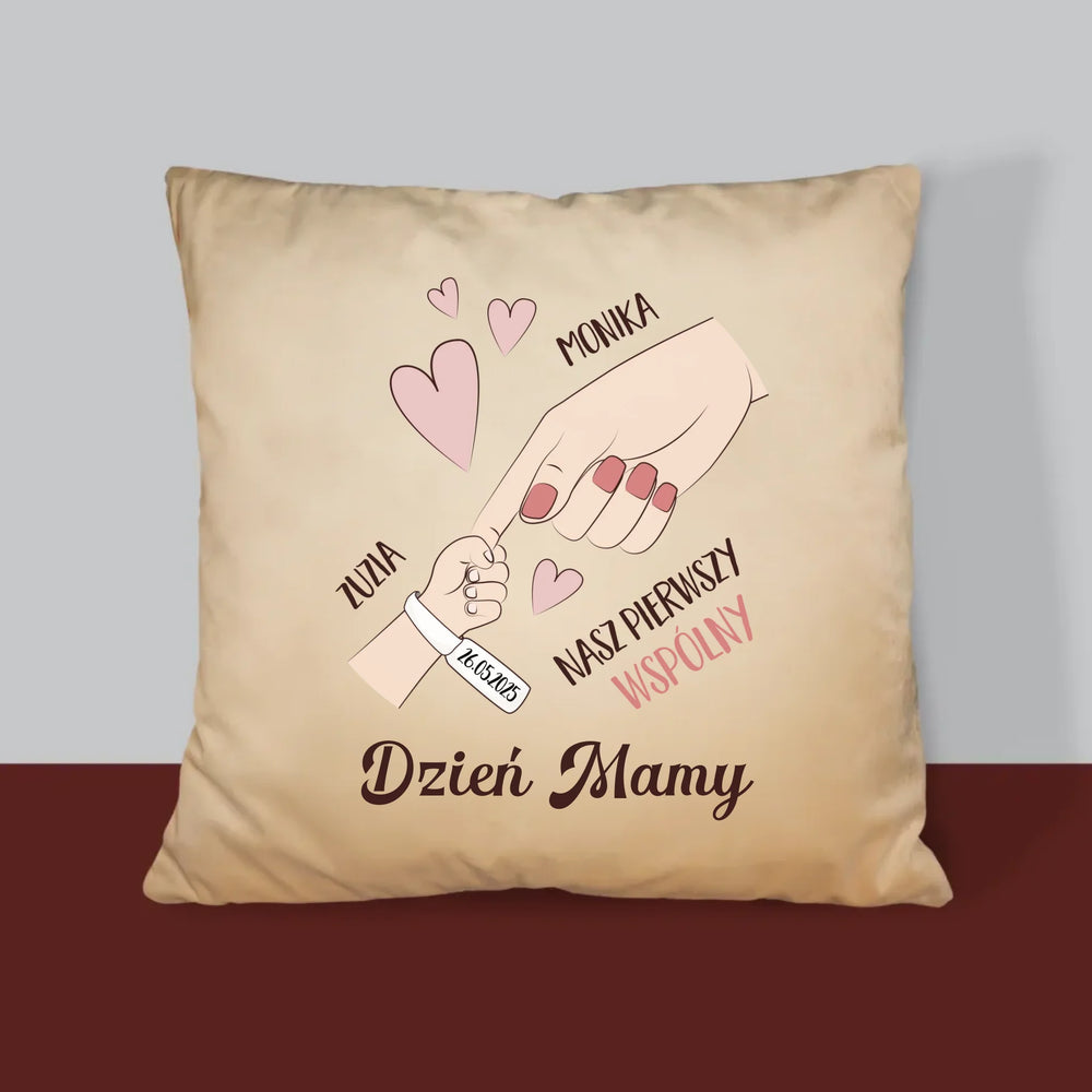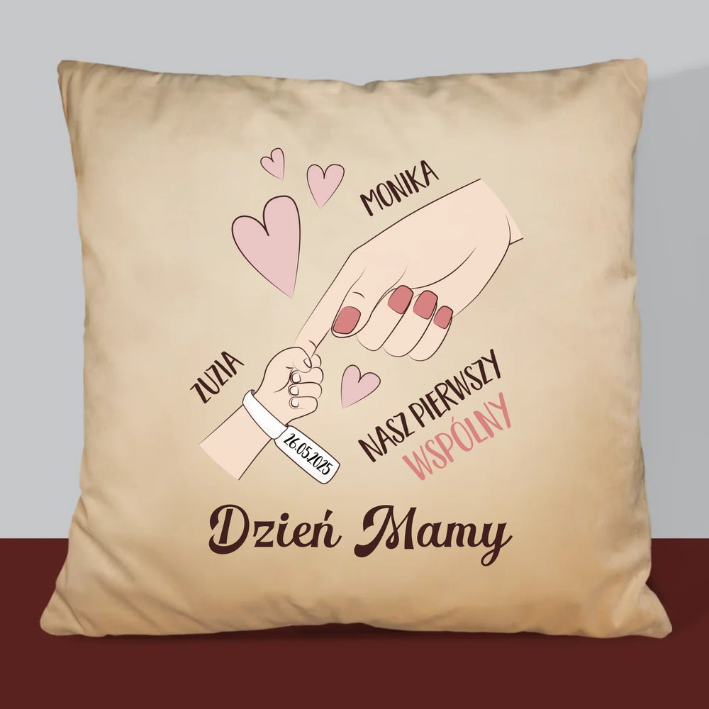 Imię i Podpis: Pierwszy Wspólny Dzień Mamy - Poduszka z Nadrukiem