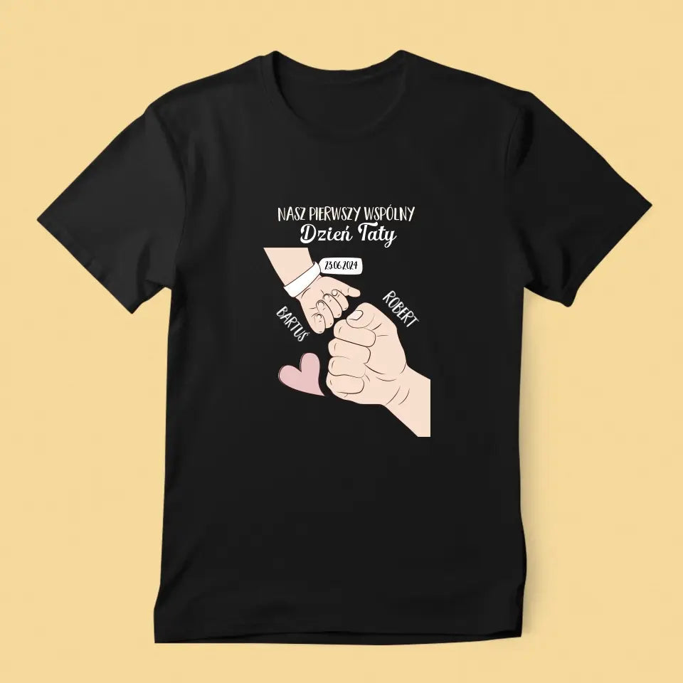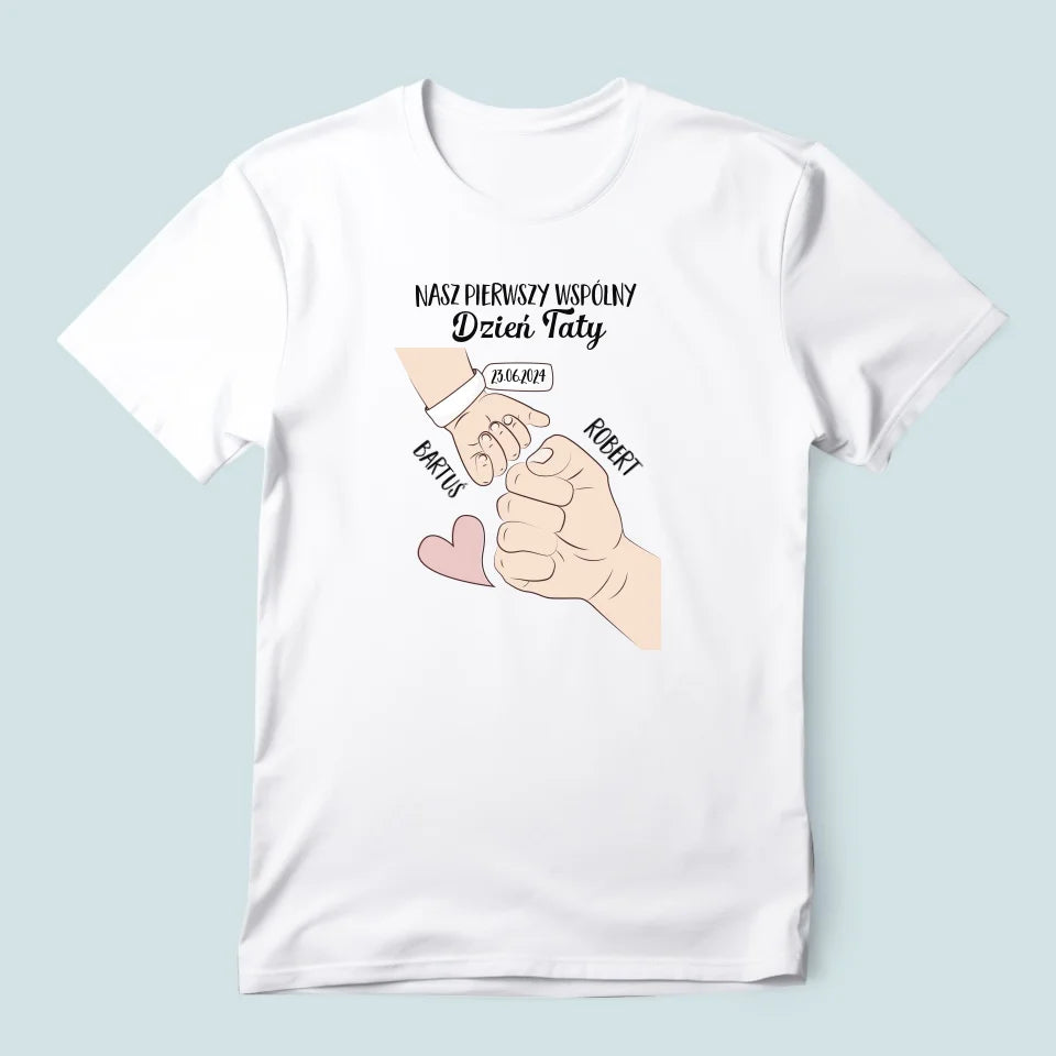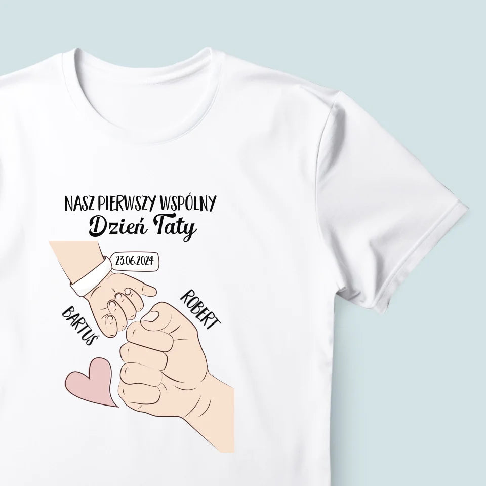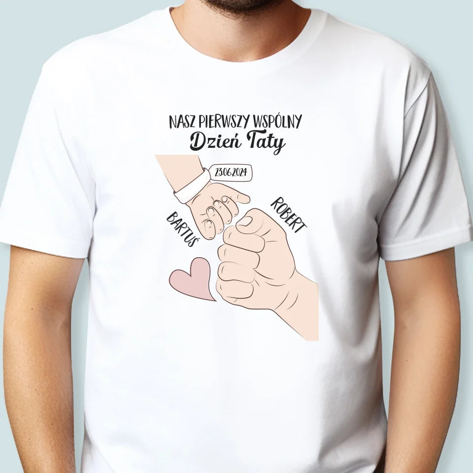 Imię I Podpis: Pierwszy Wspólny Dzień Taty - Personalizowana Koszulka Męska