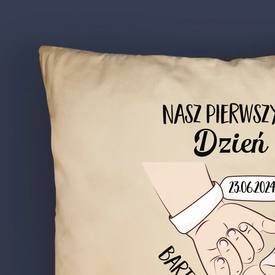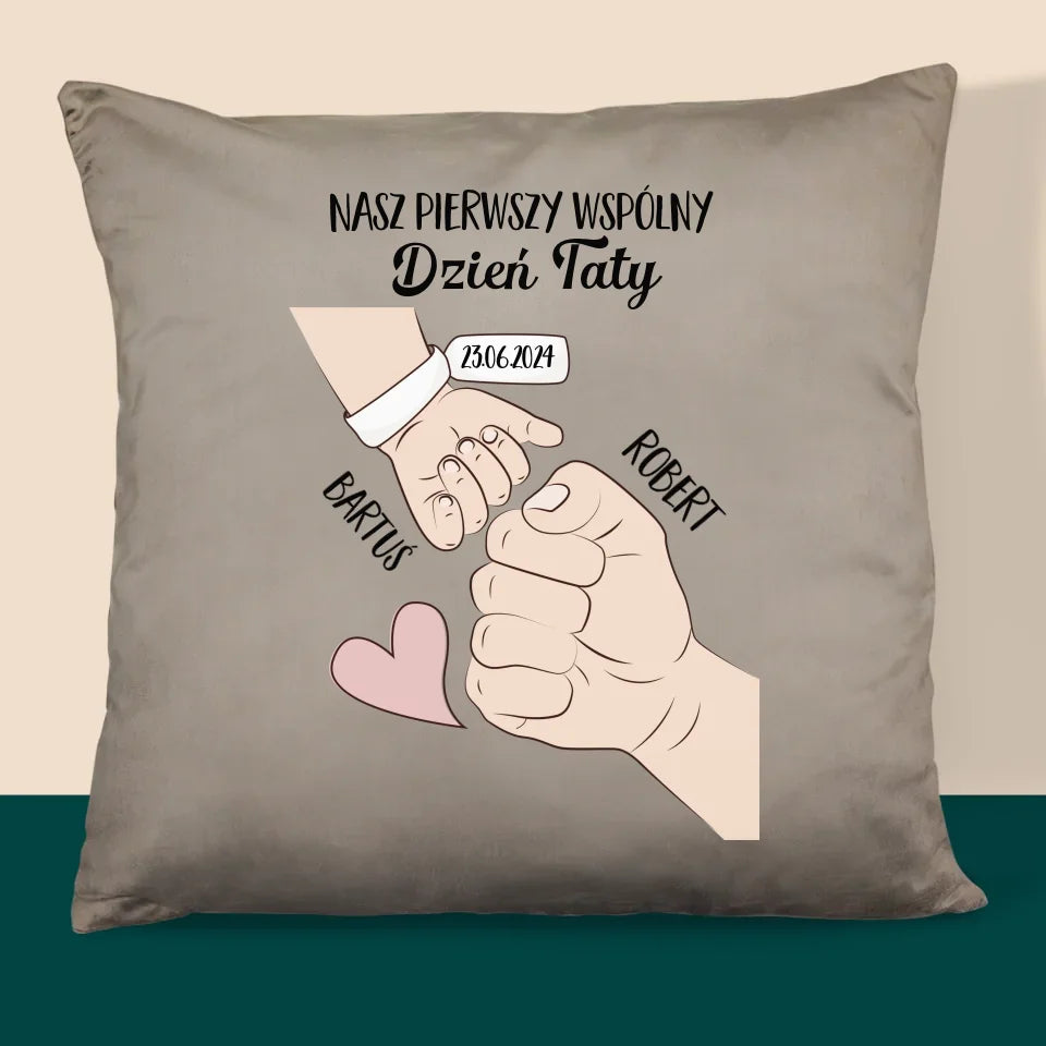 Imię I Podpis: Pierwszy Wspólny Dzień Taty - Poduszka z Nadrukiem