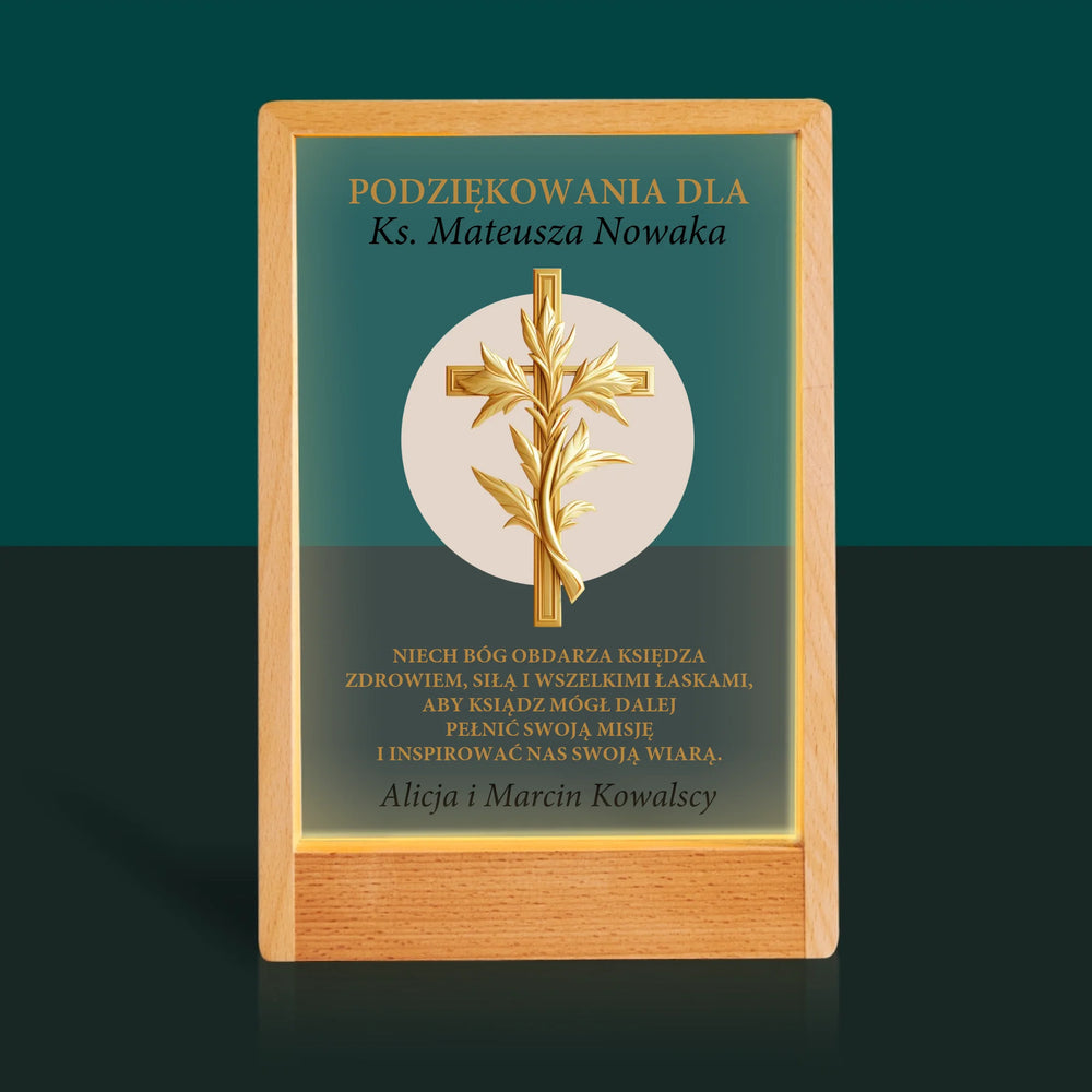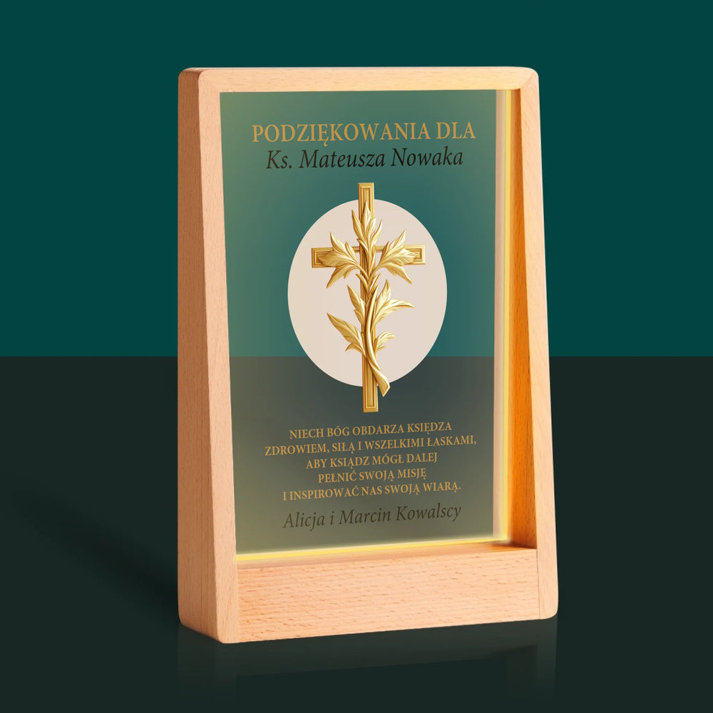 Imię i Podpis: Podziękowania Dla Księdza - Wydruk na szkle akrylowym w ramce LED