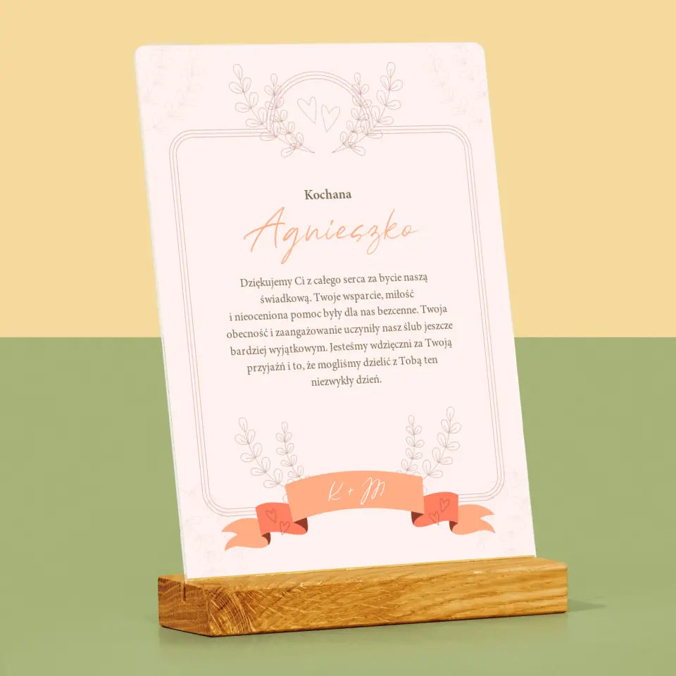 Imię i Podpis: Podziękowania Dla Świadkowej - Wydruk na szkle akrylowym w ramce LED