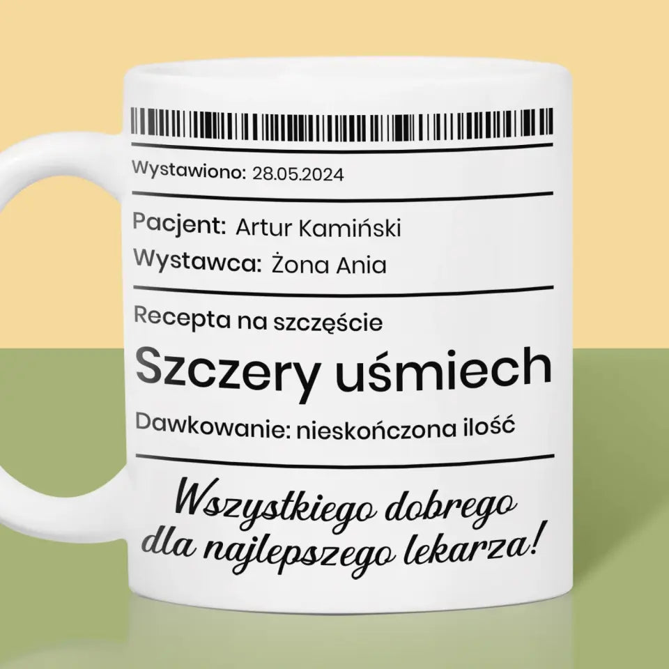 Imię I Podpis: Recepta Na Szczęście - Kubek z nadrukiem