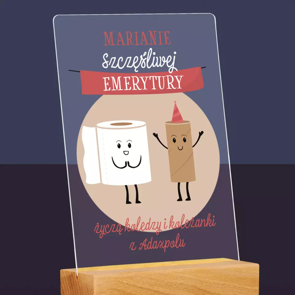 Imię i Podpis: Szczęśliwej Emerytury - Wydruk Na Szkle Akrylowym