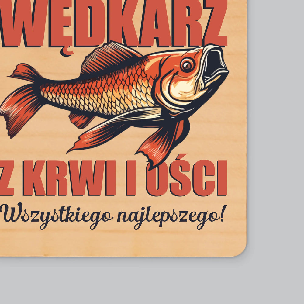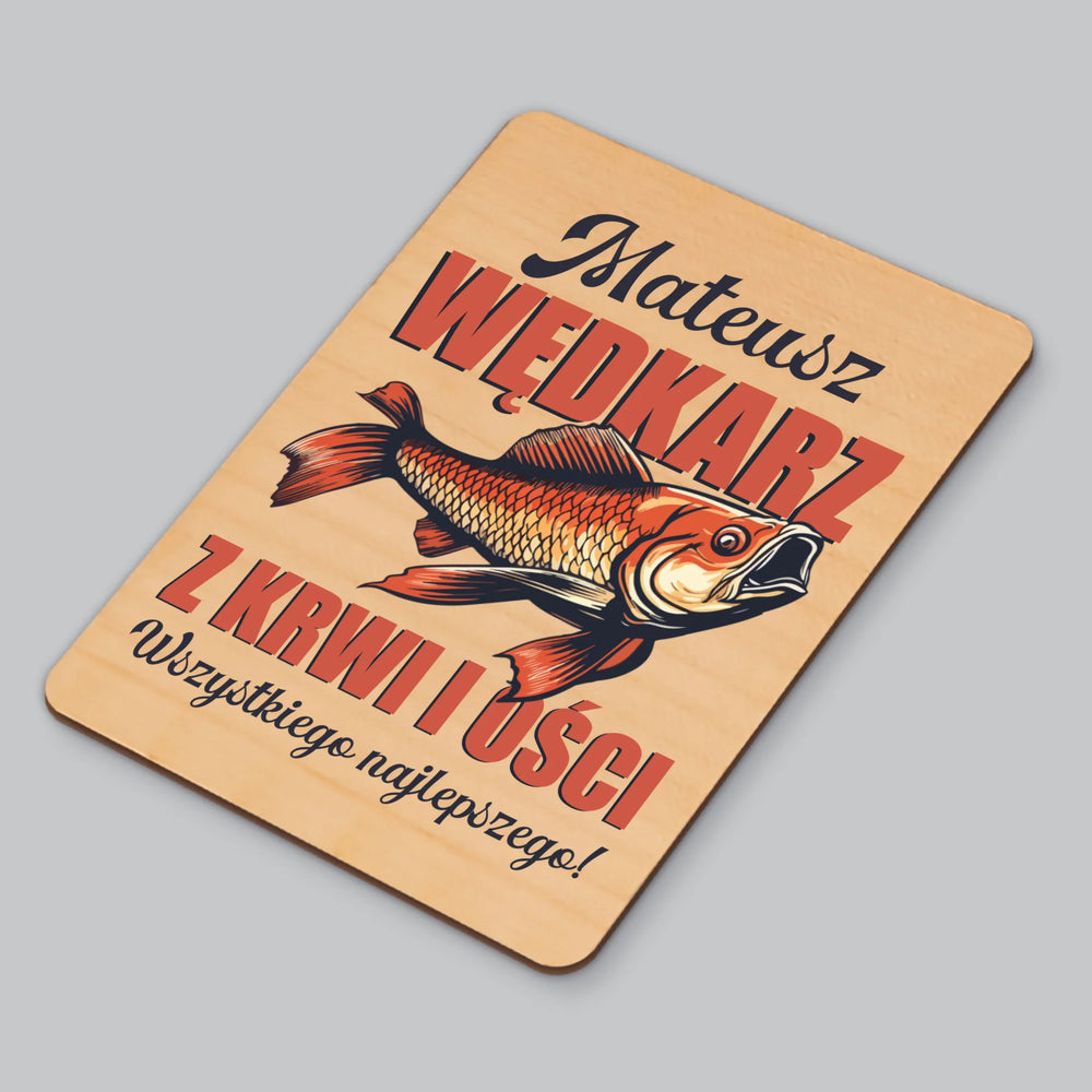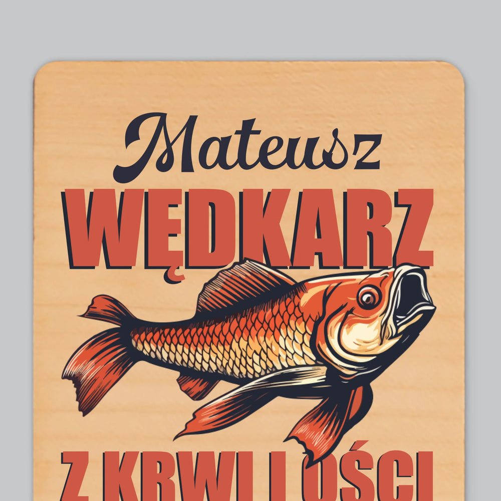 Imię i Podpis: Wędkarz z Krwi i Ości - Magnes drewniany