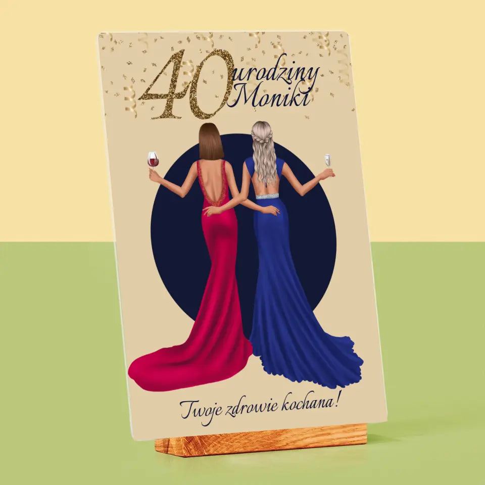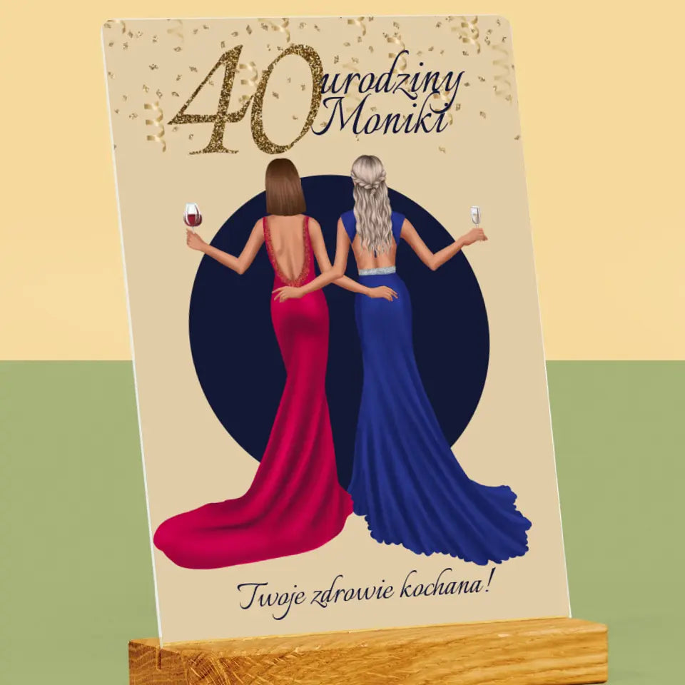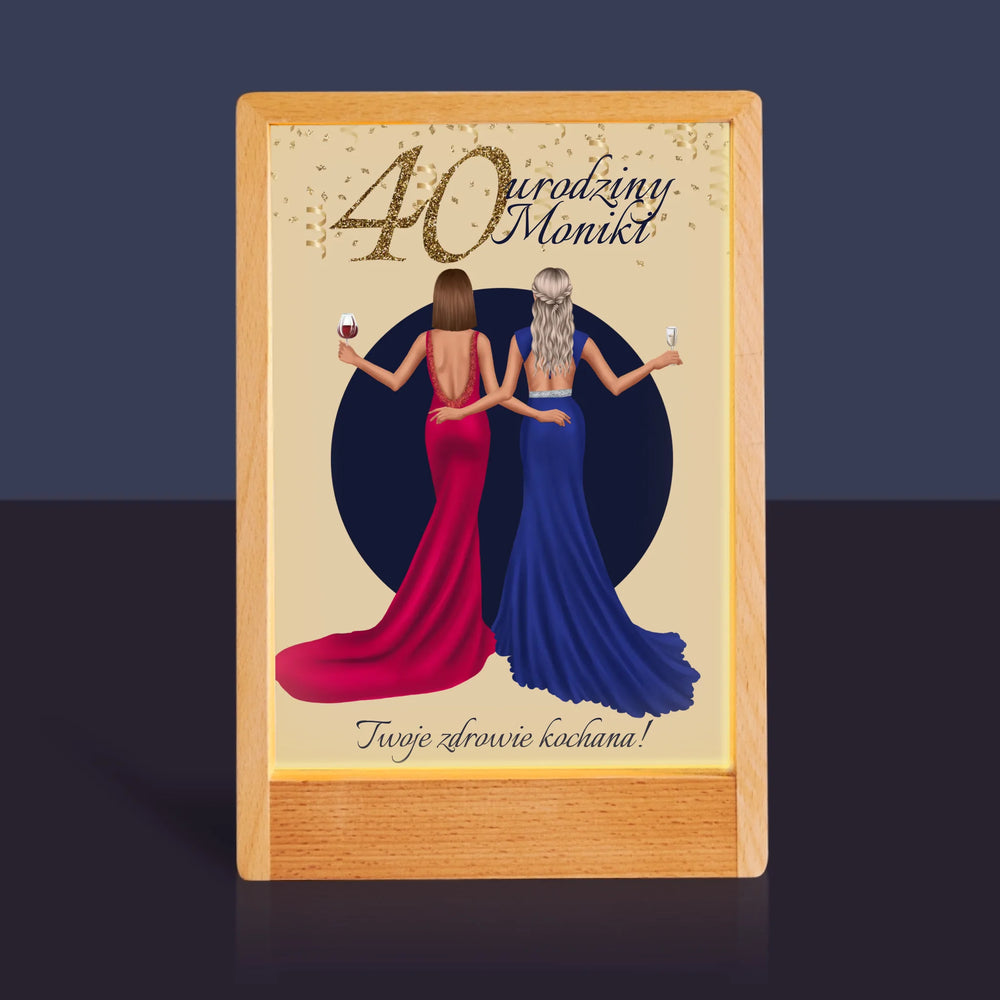 Kreator Postaci: 40 Urodziny Przyjaciółki - Wydruk na szkle akrylowym w ramce LED