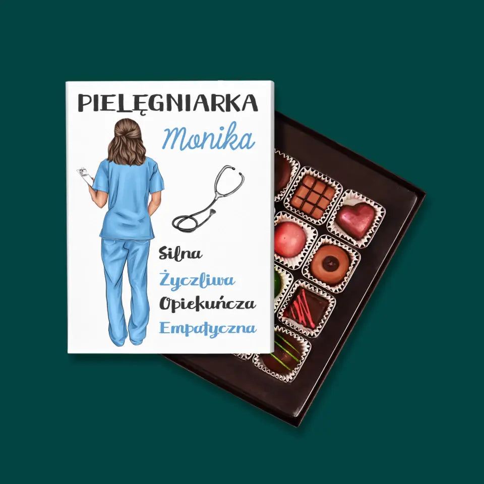 Pyszne praliny z belgijskiej czekolady w eleganckim pudełku z wybraną przez Ciebie personalizacją.