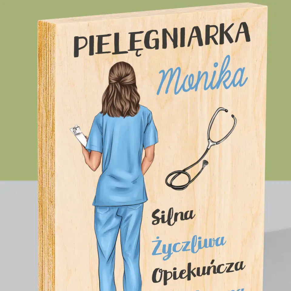 Kreator Postaci: Cechy Pielęgniarki - Wydruk na drewnie - Pion