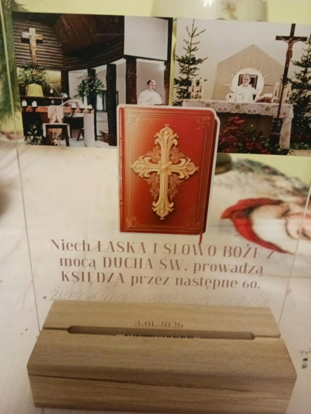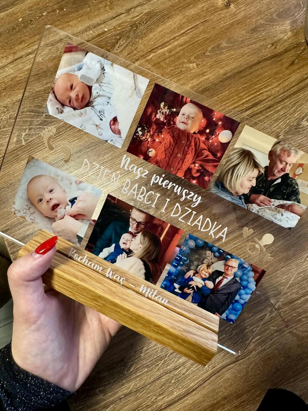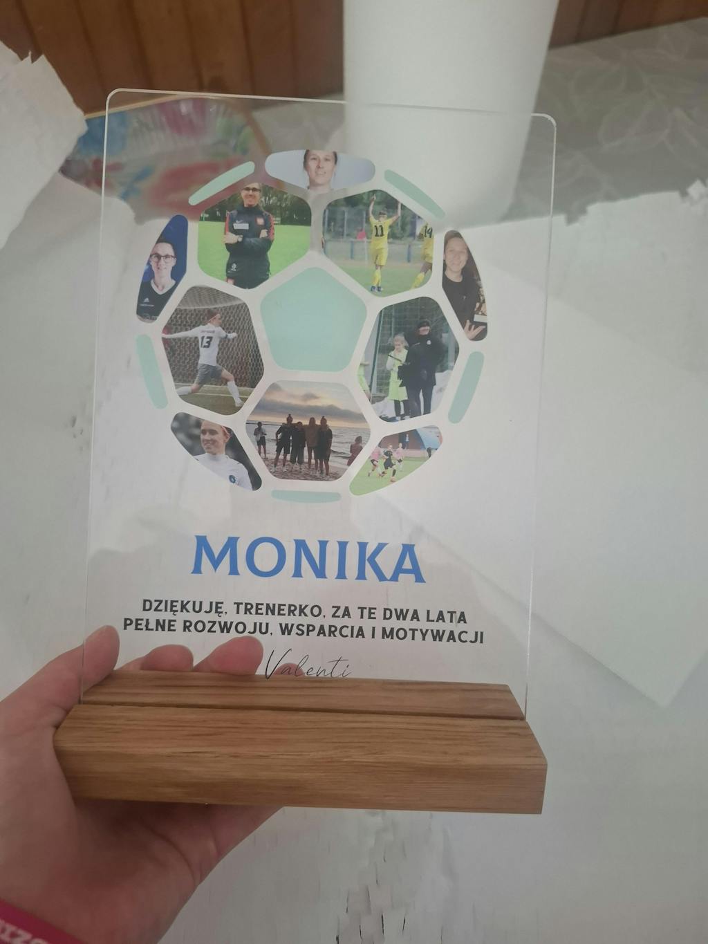 Dzięki eleganckiej, drewnianej podstawce wydruk można postawić w dowolnym miejscu i jest stabilny.