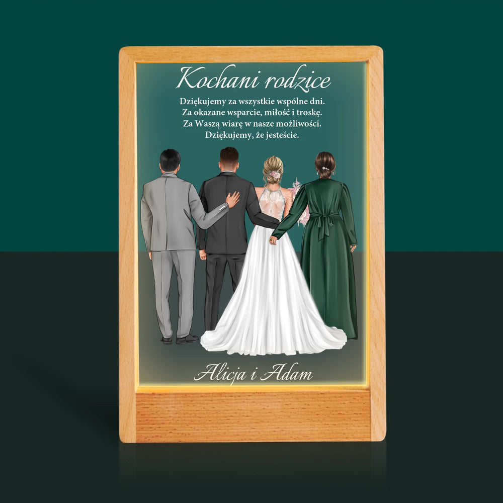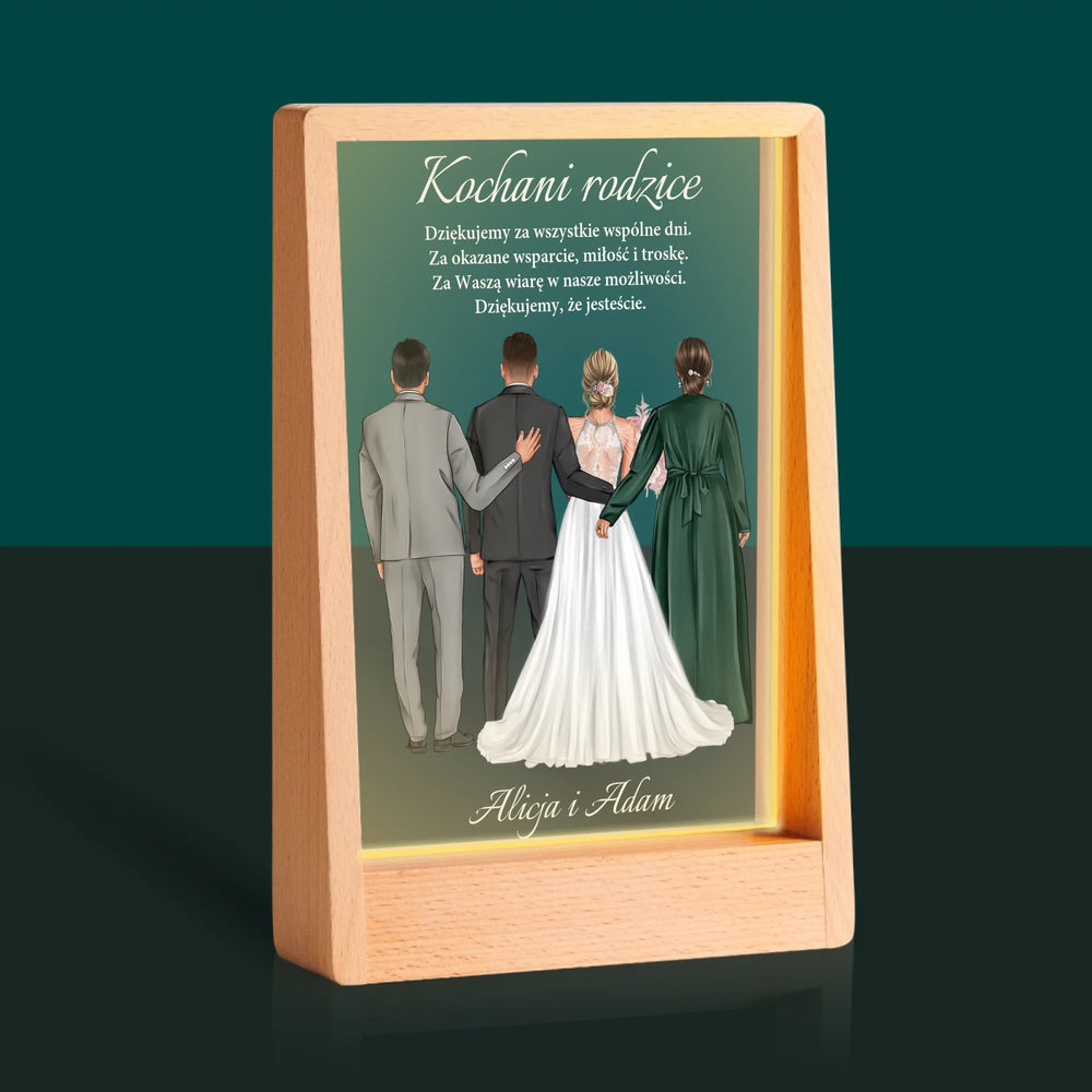 Kreator Postaci: Kochani Rodzice Dziękujemy - Wydruk na szkle akrylowym w ramce LED