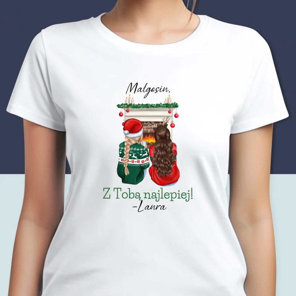 Kreator Postaci: Najlepsze Przyjaciółki W Święta - Personalizowana Koszulka Damska
