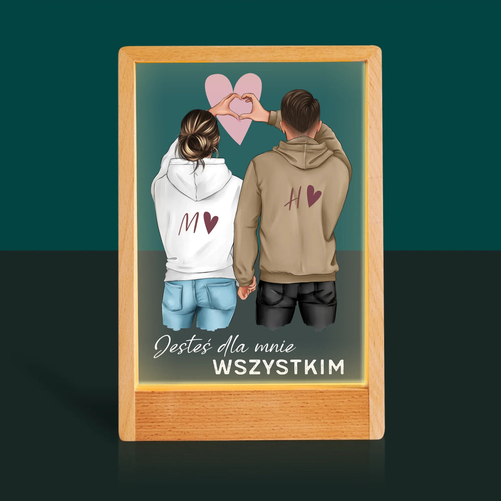 Kreator Postaci: Para Serce - Wydruk na szkle akrylowym w ramce LED