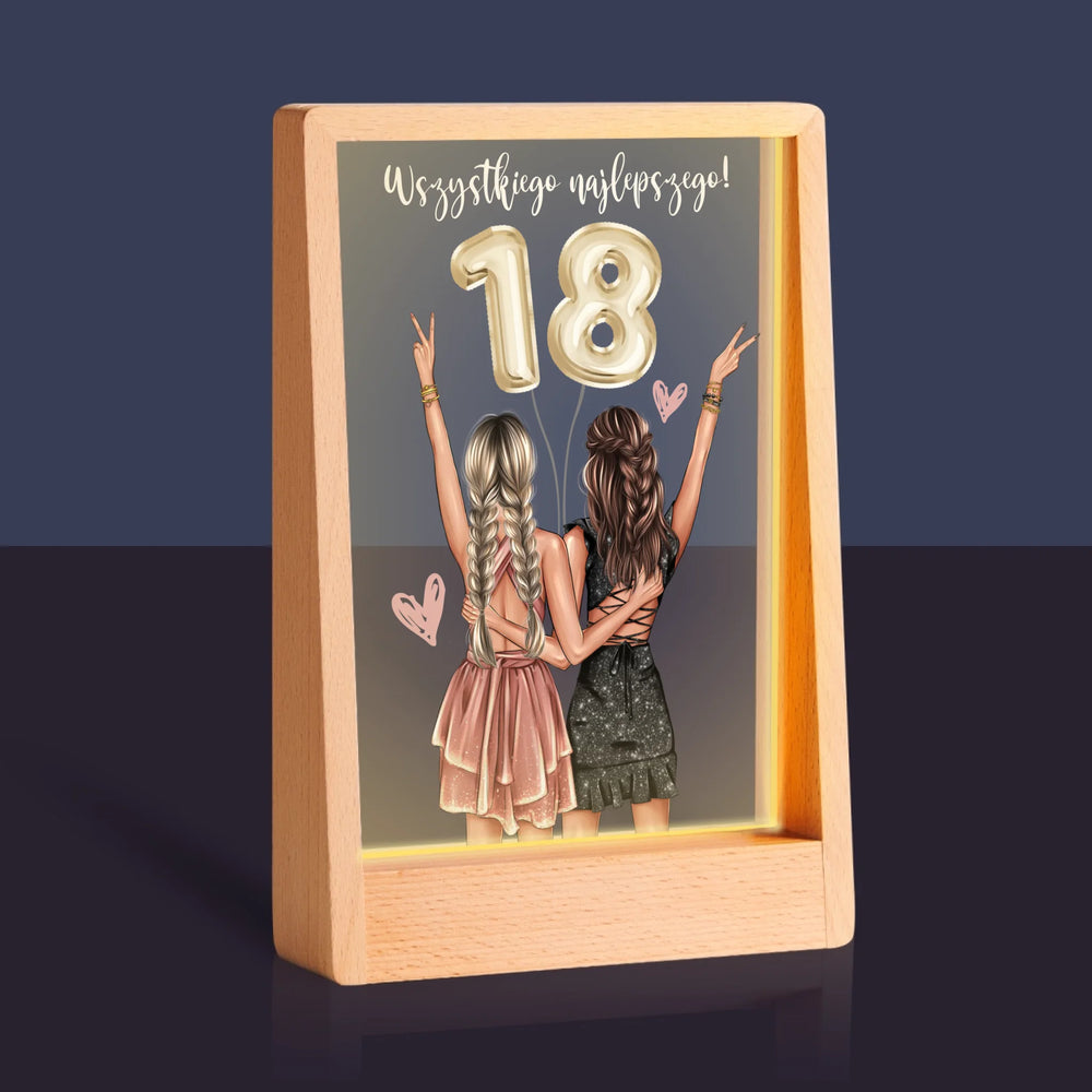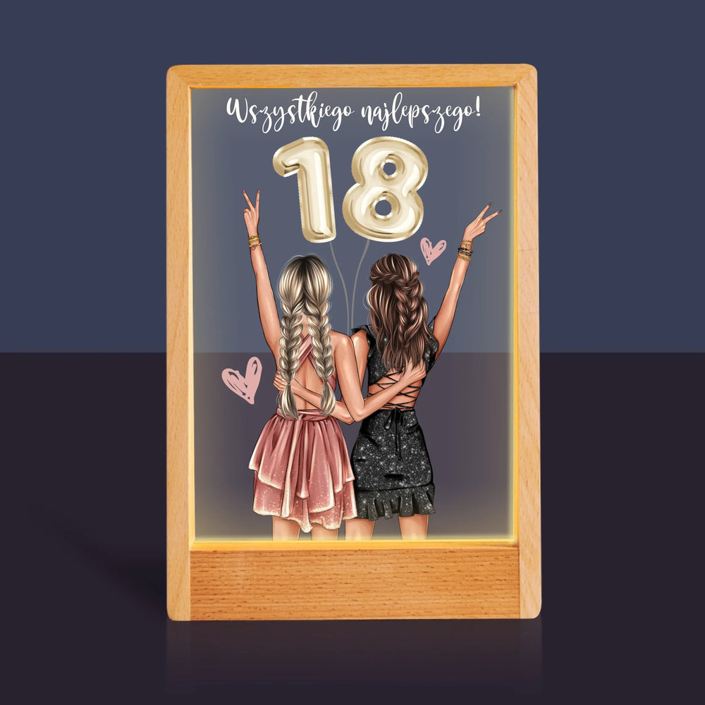 Kreator Postaci: Przyjaciółki Osiemnastka - Wydruk na szkle akrylowym w ramce LED