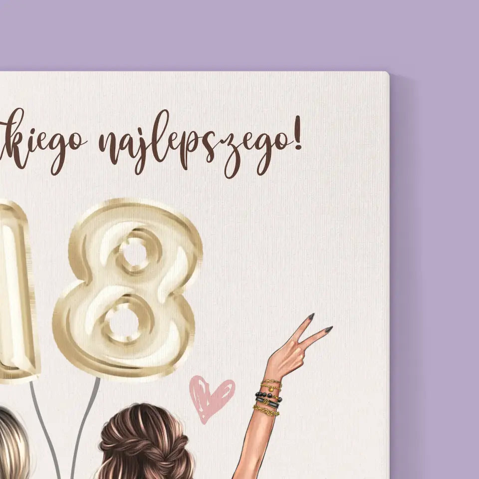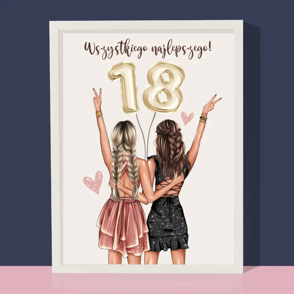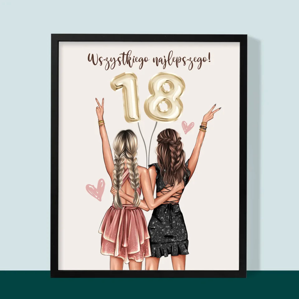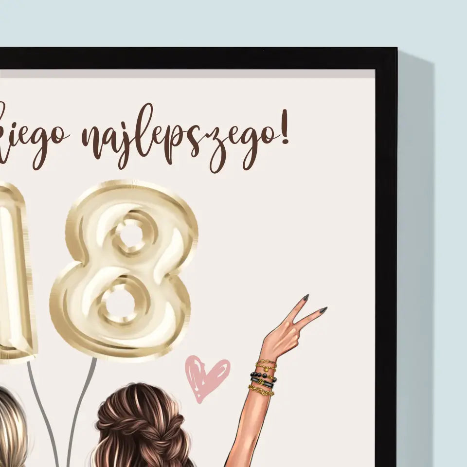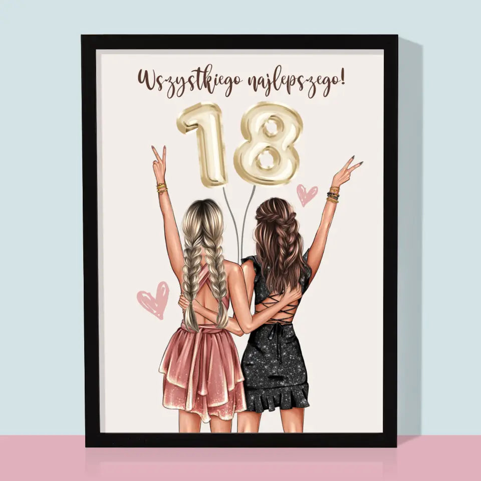 Kreator Postaci: Przyjaciółki Osiemnastka - Wydruk obramowany - Pion