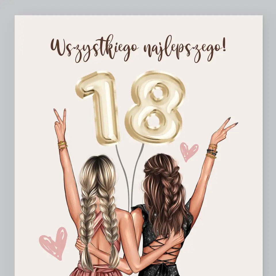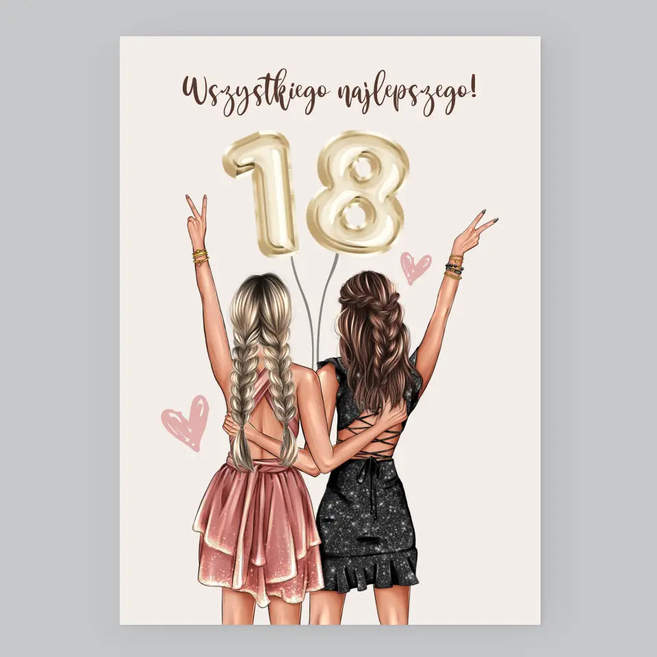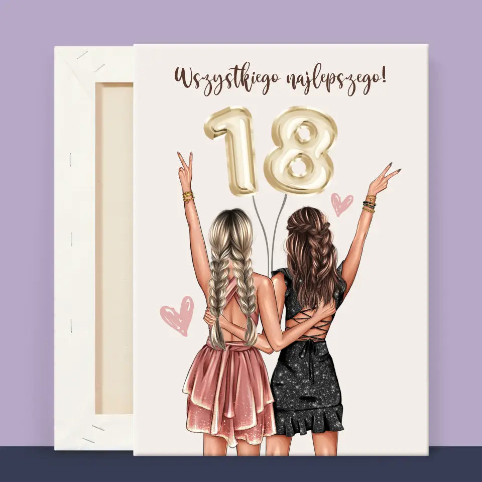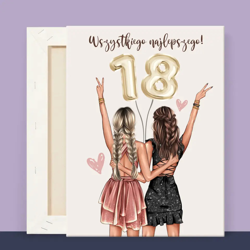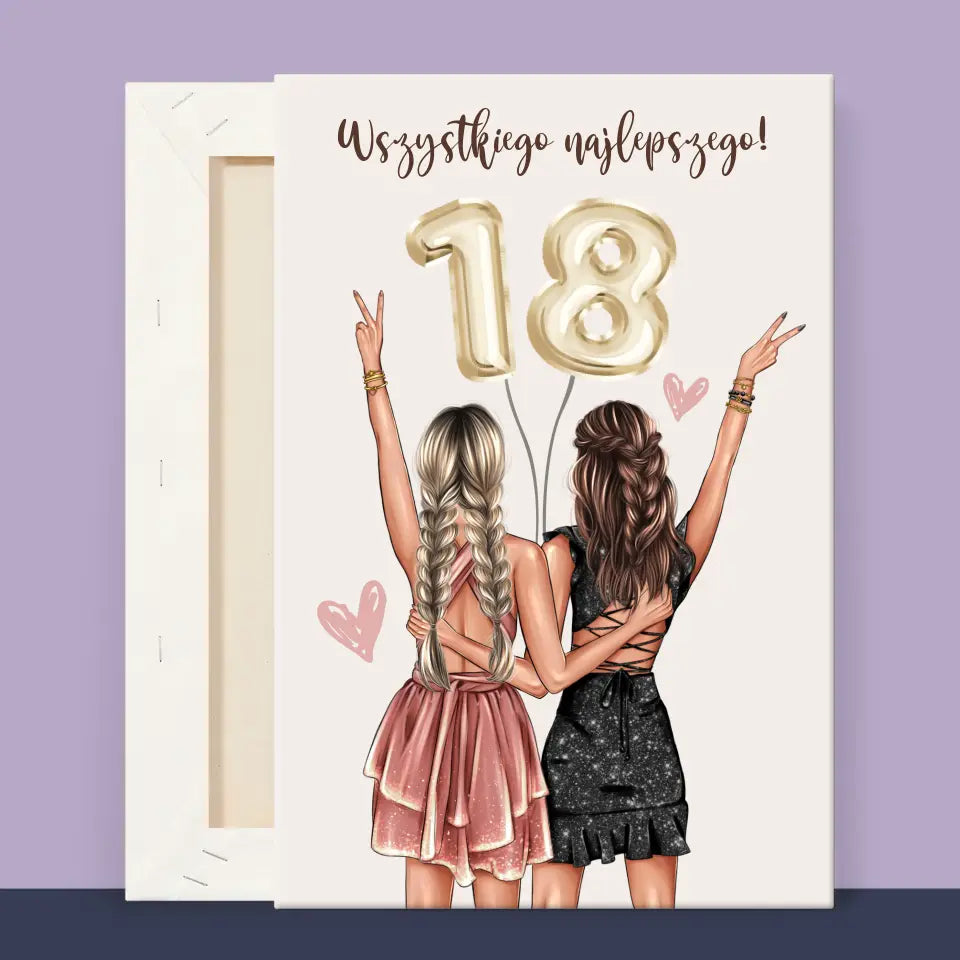 Kreator Postaci: Przyjaciółki Osiemnastka - Wydruk obramowany - Pion