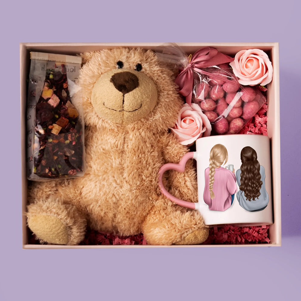 Kreator Postaci: Przyjaciółki - Zestaw prezentowy z kubkiem, misiem i słodkościami