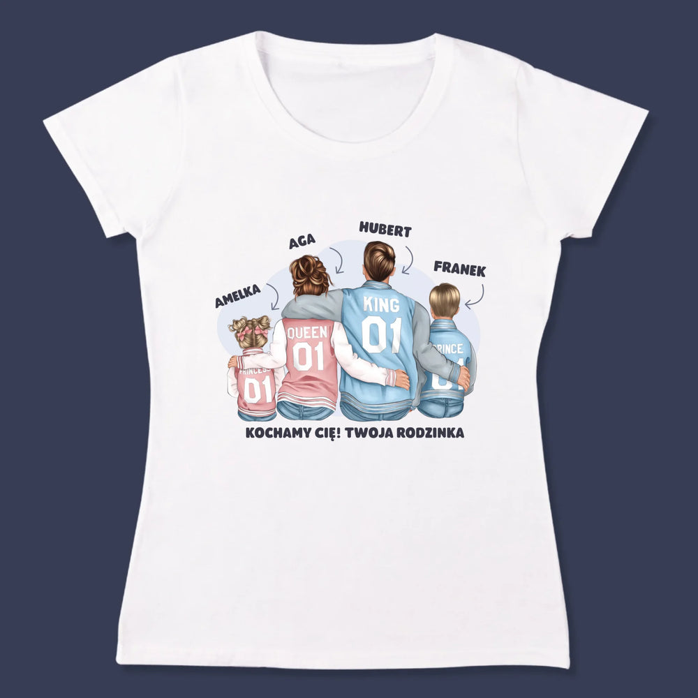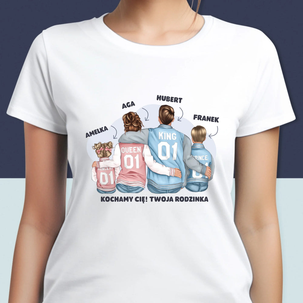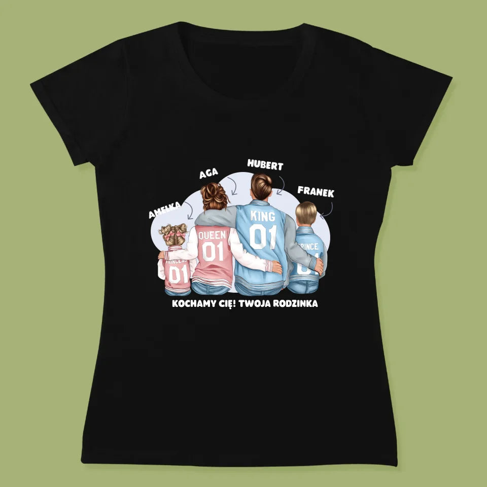 Kreator Postaci: Rodzina W Bluzach - Personalizowana Koszulka Damska