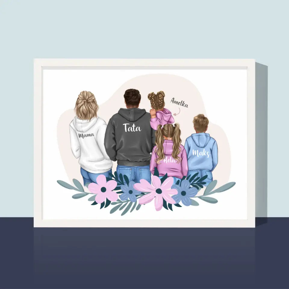 Kreator Postaci: Rodzina z Dziećmi - Wydruk obramowany 30x40 - Poziom