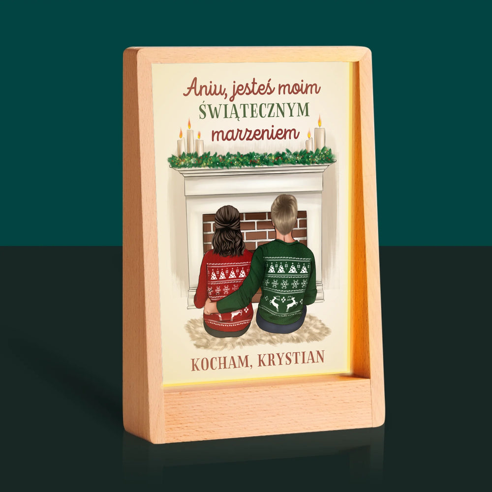 Kreator Postaci: Świąteczna Para - Wydruk na szkle akrylowym w ramce LED