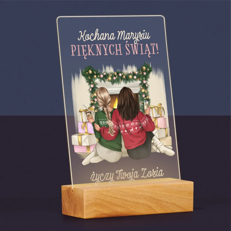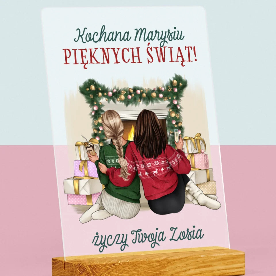 Kreator Postaci: Świąteczne Przyjaciółki - Wydruk na szkle akrylowym w ramce LED