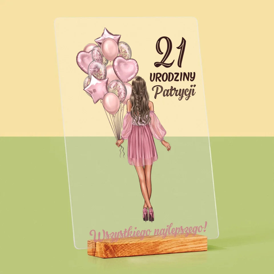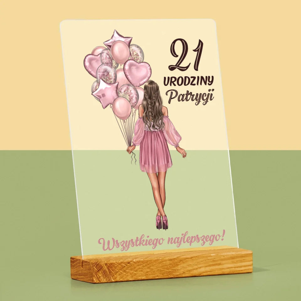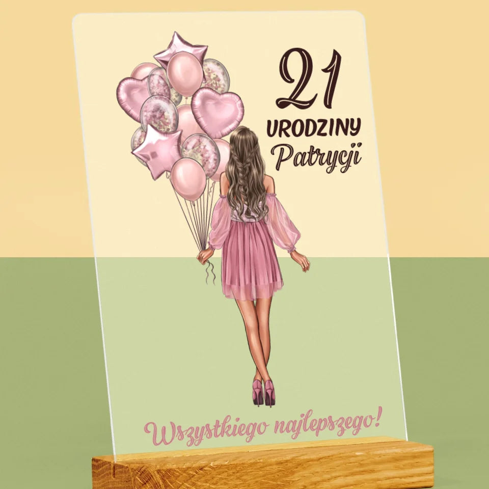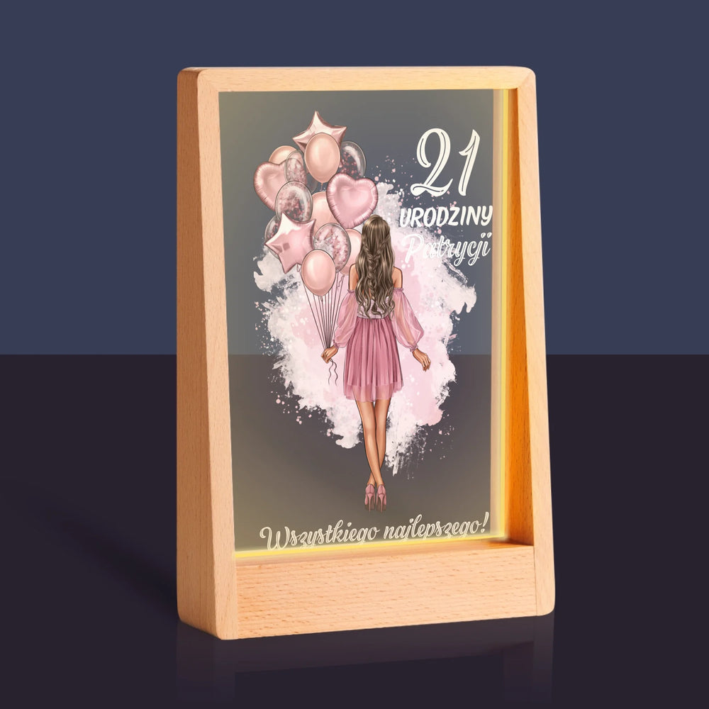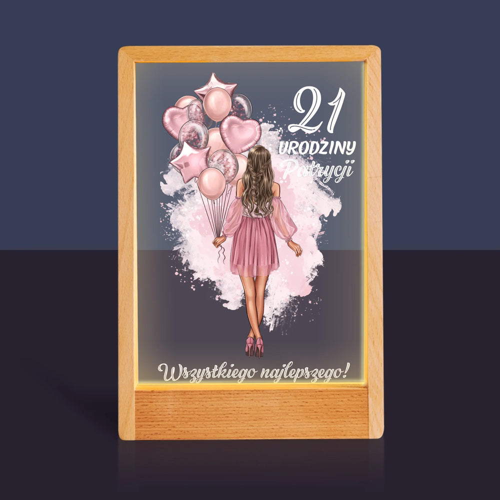 Kreator Postaci: Urodziny Balony - Wydruk na szkle akrylowym w ramce LED
