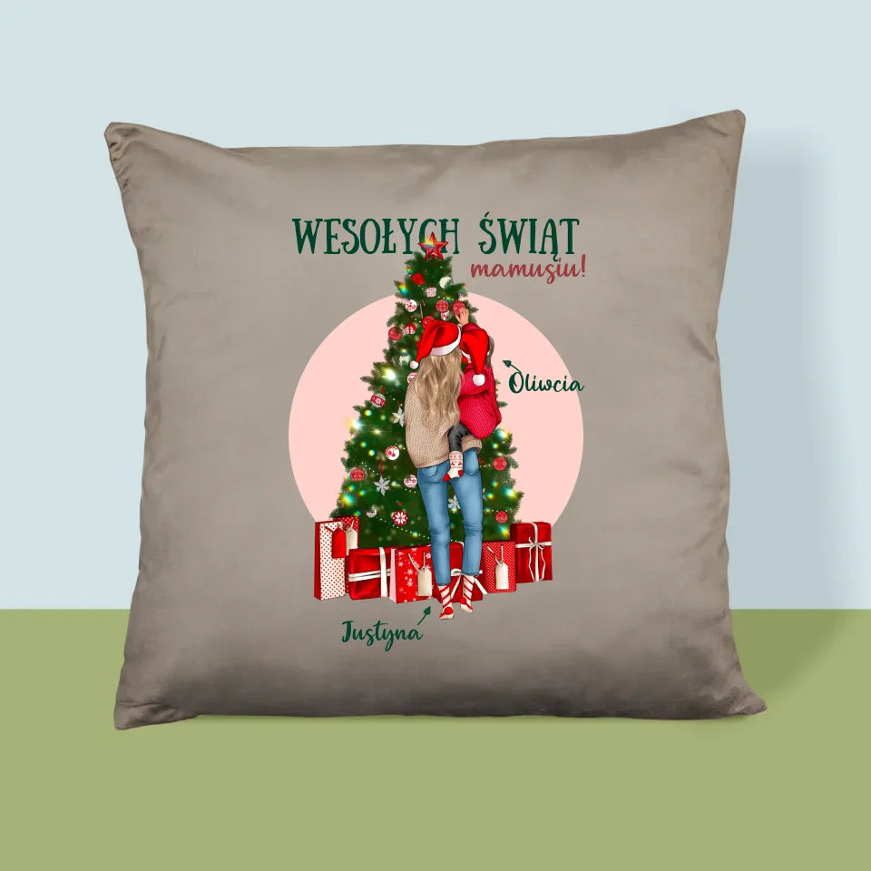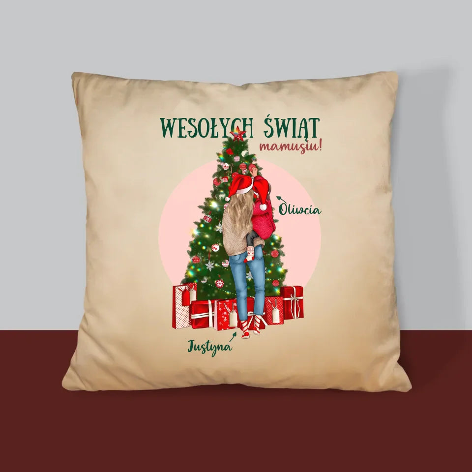 Kreator Postaci: Wesołych Świąt Mamusiu - Poduszka z Nadrukiem