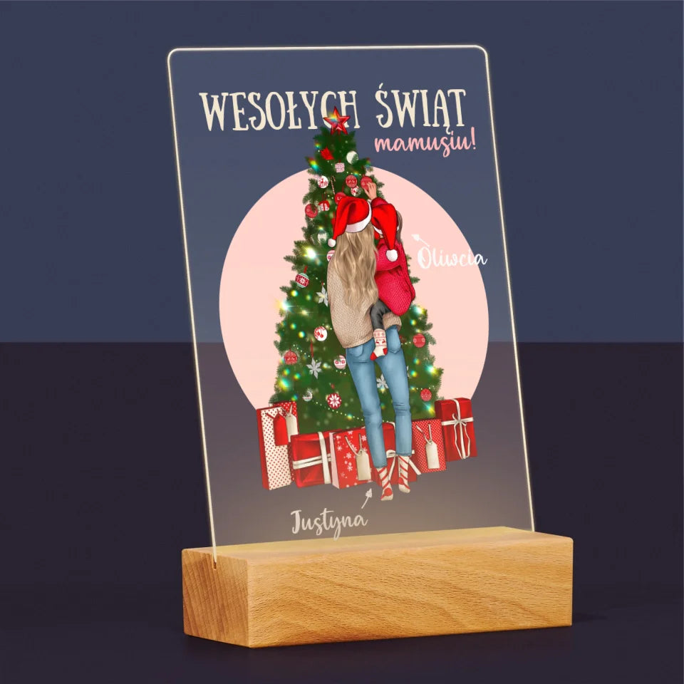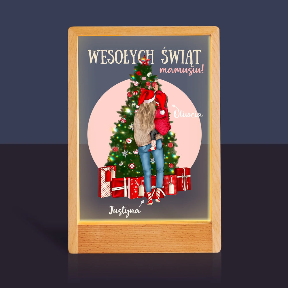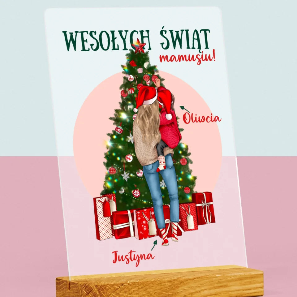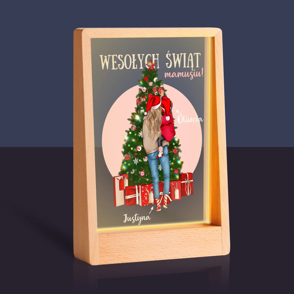 Kreator Postaci: Wesołych Świąt Mamusiu - Wydruk na szkle akrylowym w ramce LED