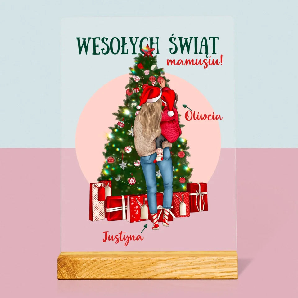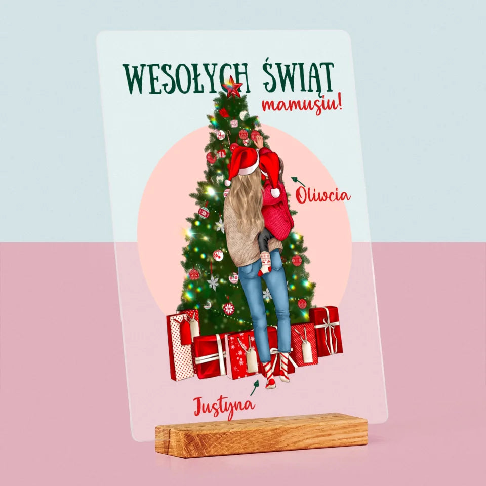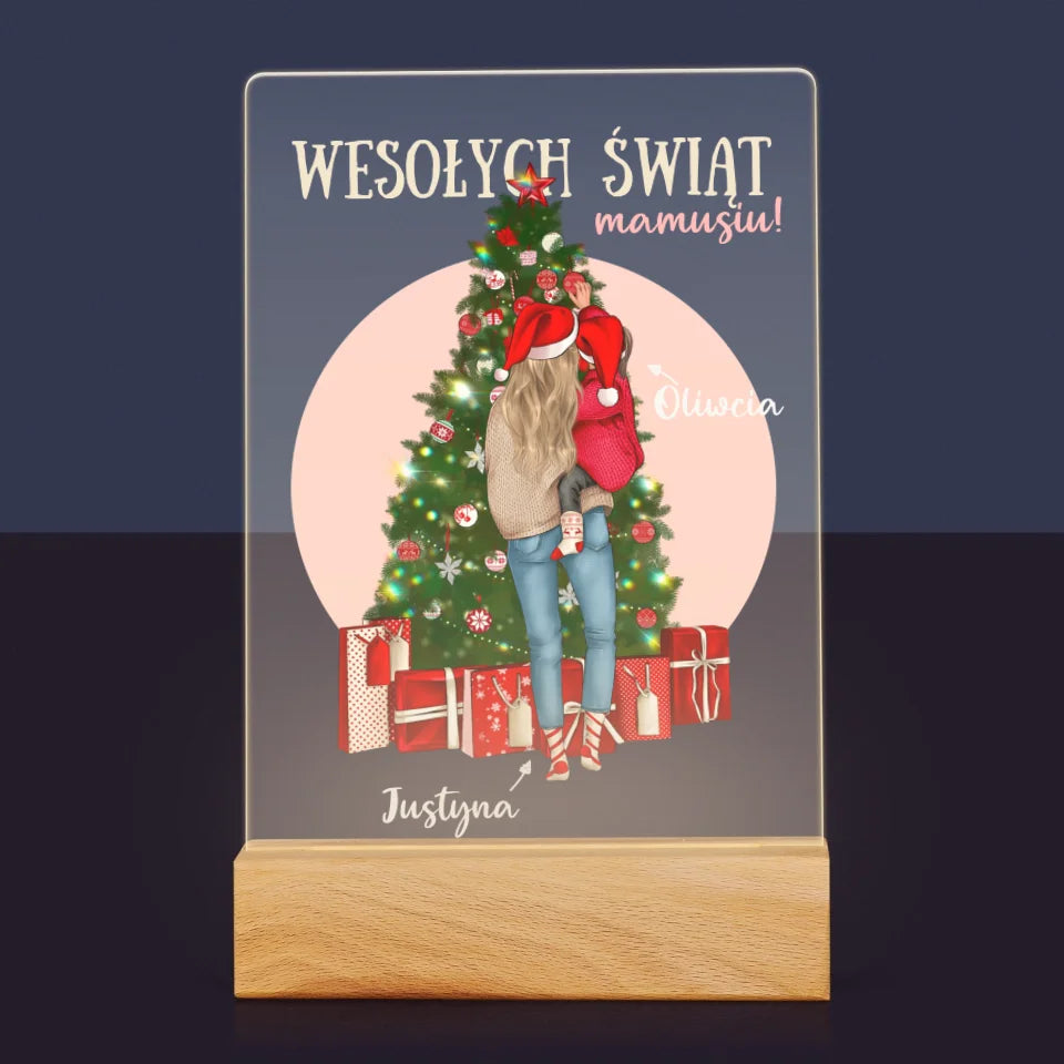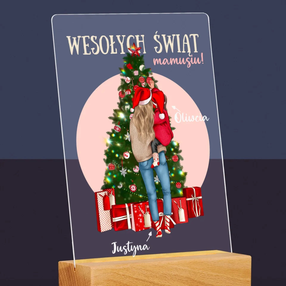 Kreator Postaci: Wesołych Świąt Mamusiu - Wydruk na szkle akrylowym w ramce LED