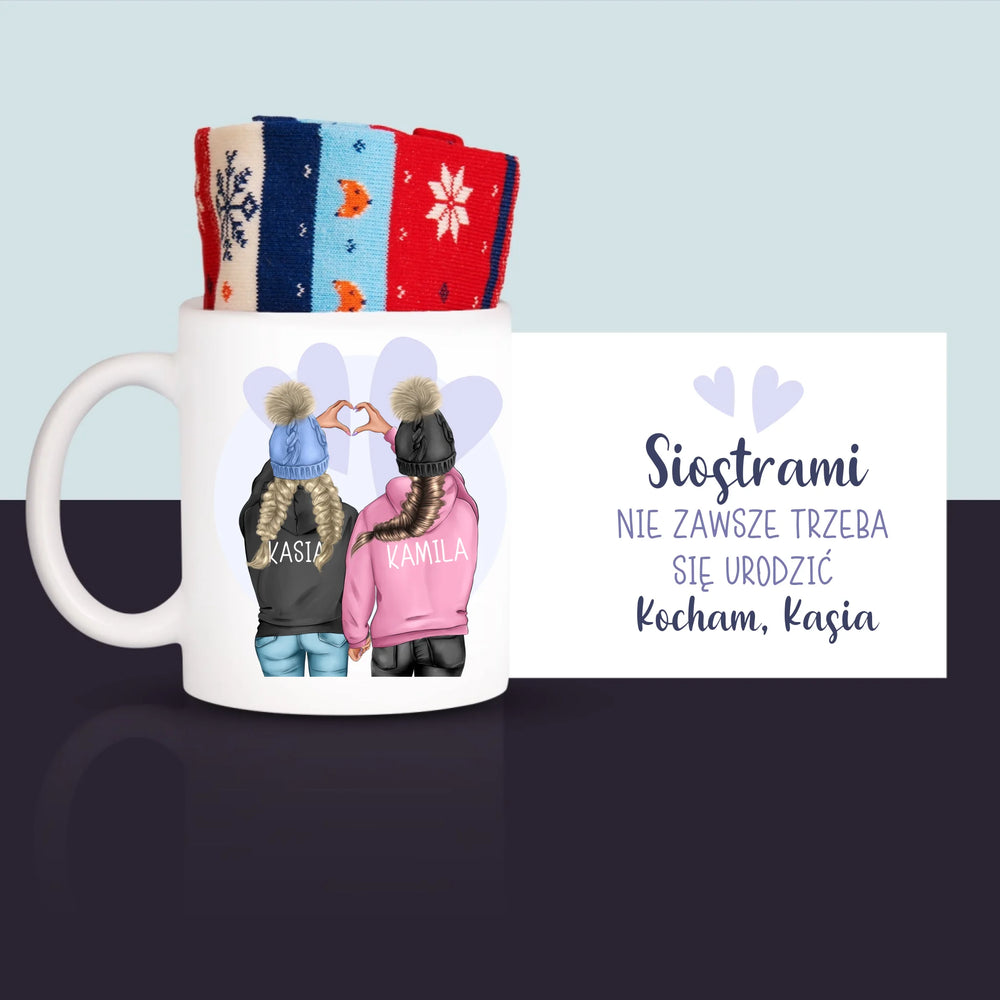 Wysokiej jakości kubek z wybraną przez Ciebie personalizacją ze skarpetkami w środku.