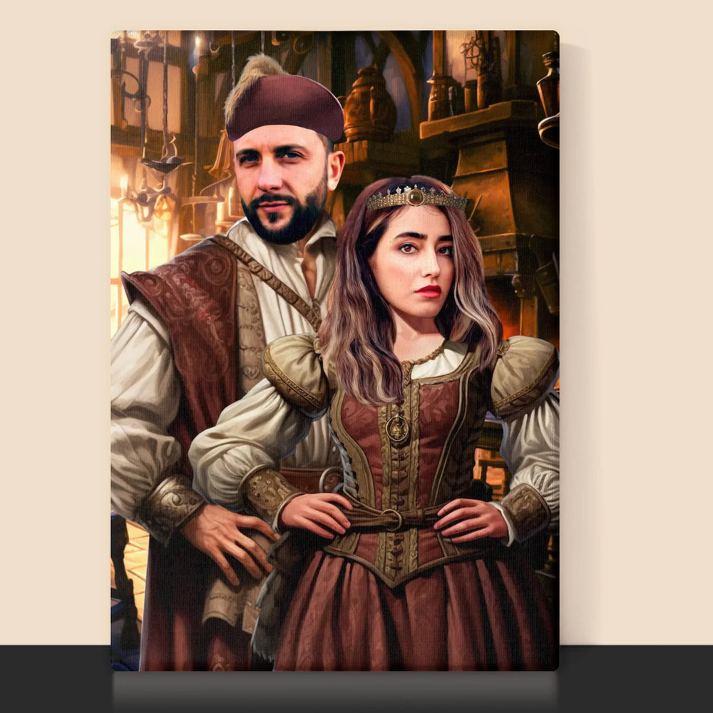 Królewski Portret: Arystokratyczny Duet - Wydruk obramowany - Pion