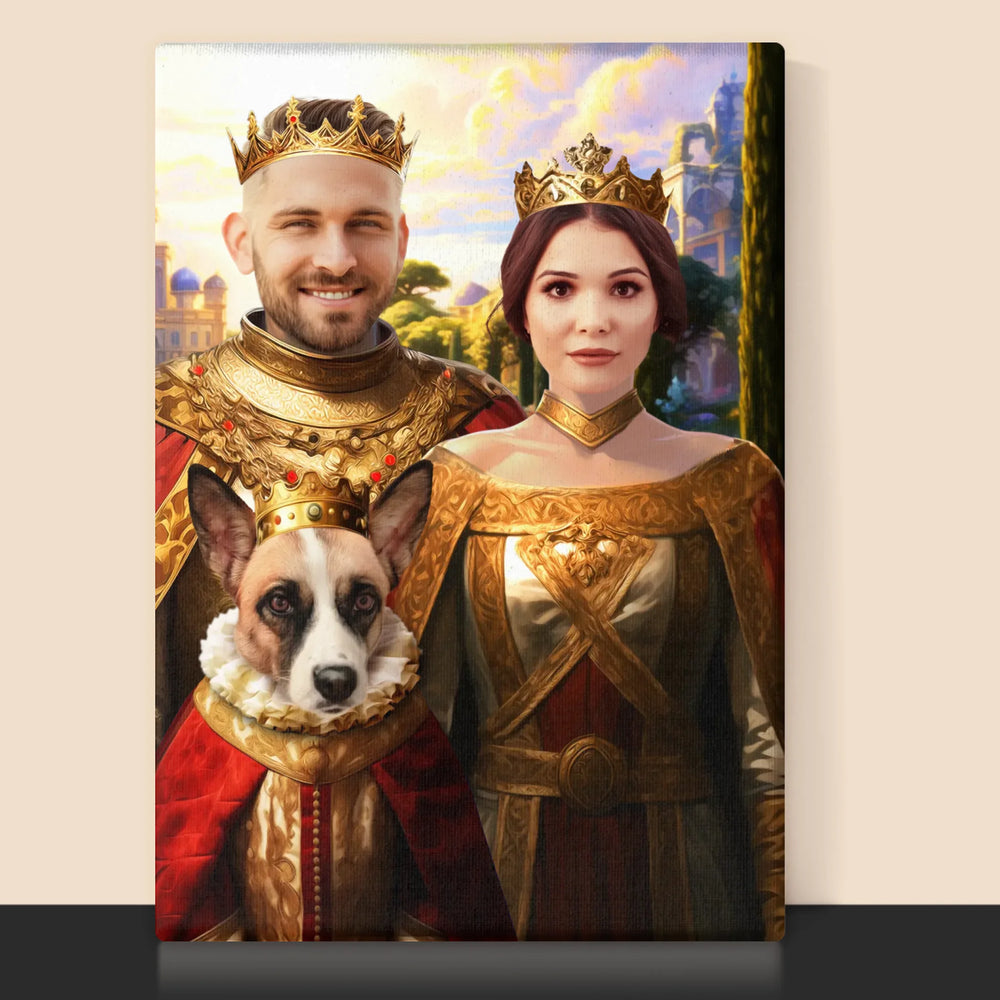 Królewski Portret: Królewska Para z Pupilem - Personalizowany Obraz na płótnie