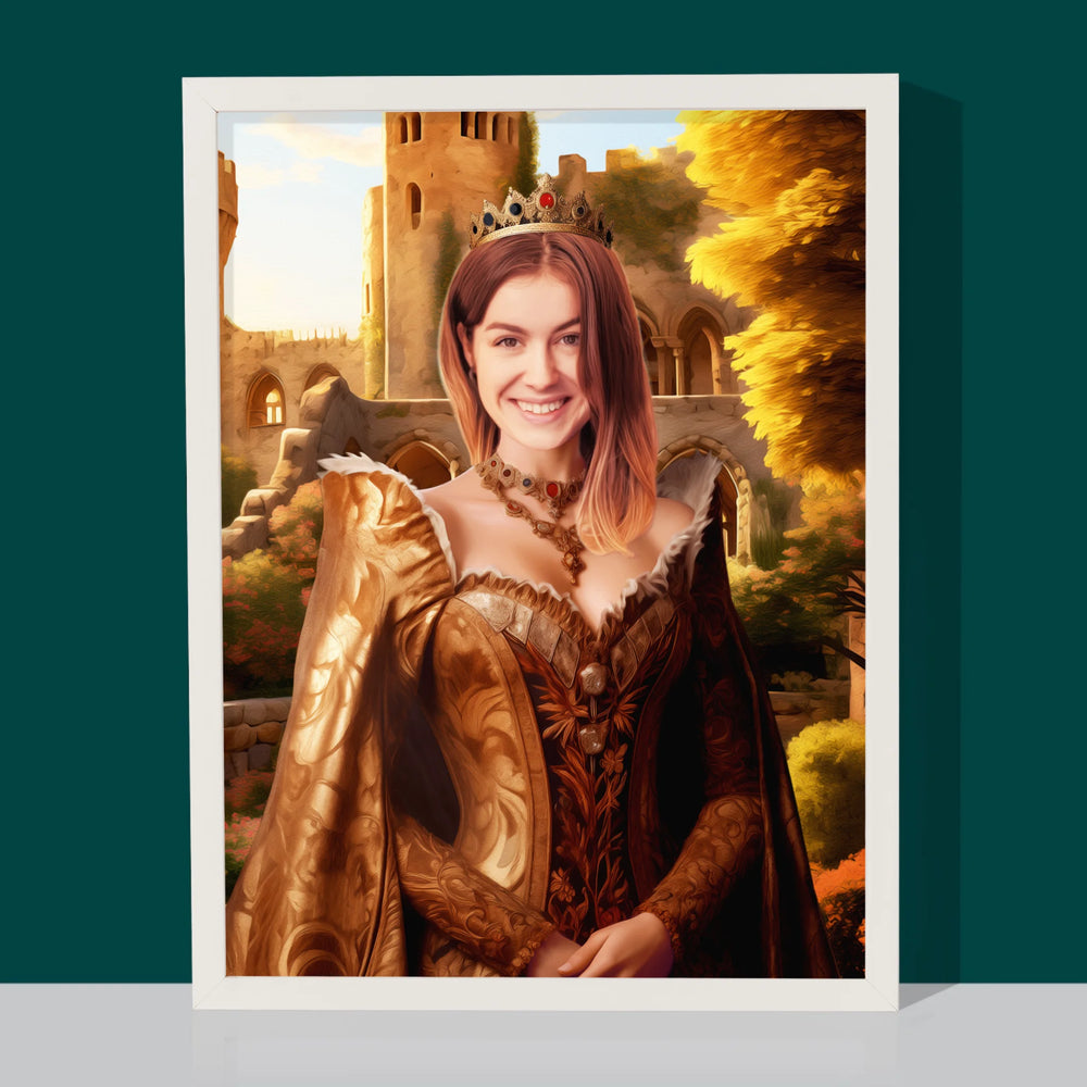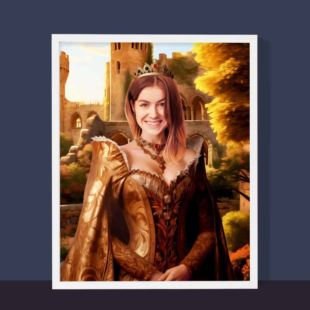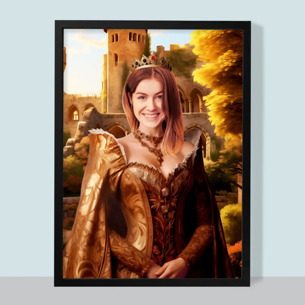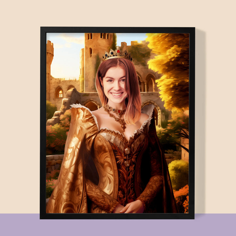 Królewski Portret: Królowa w Ogrodach - Wydruk obramowany - Pion