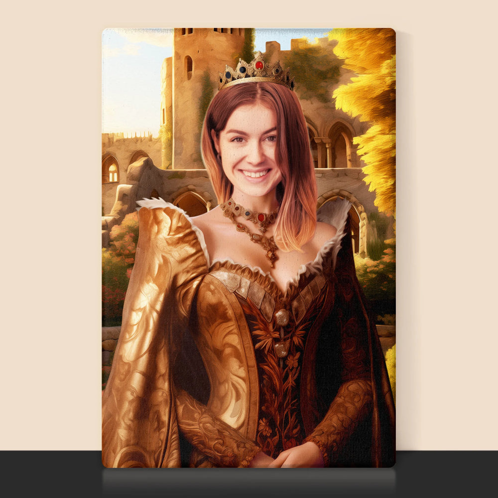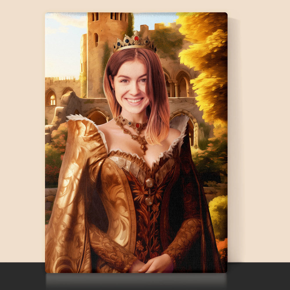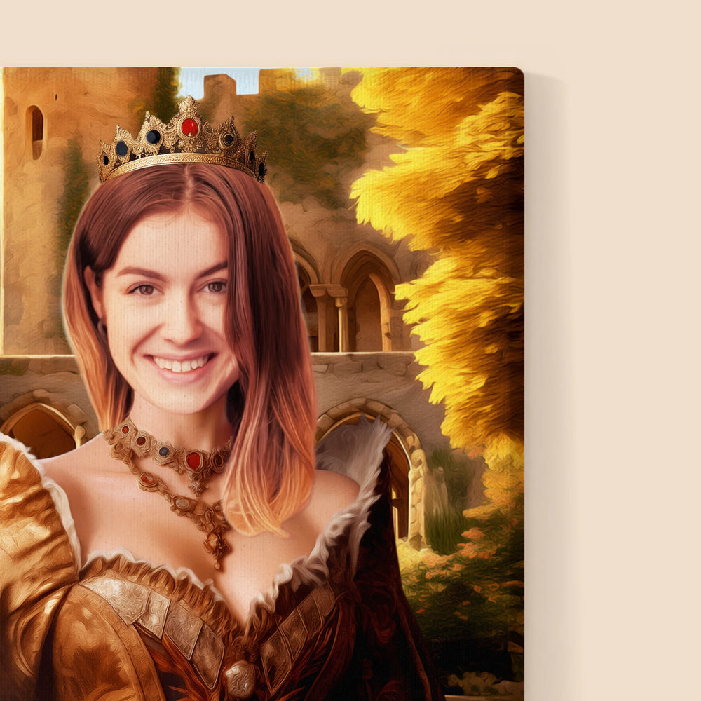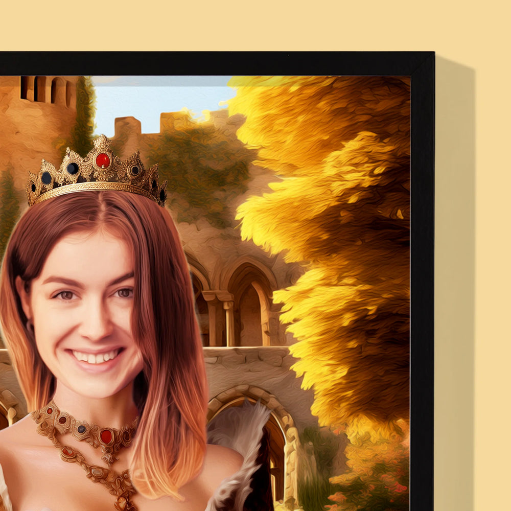Królewski Portret: Królowa w Ogrodach - Wydruk obramowany - Pion