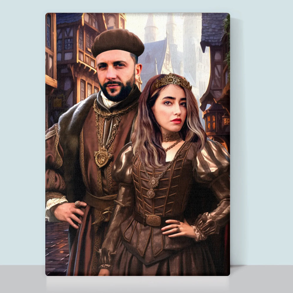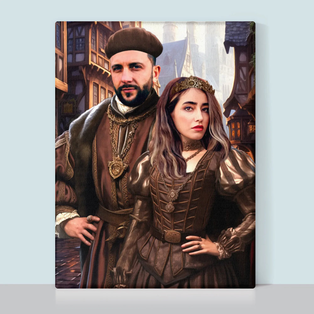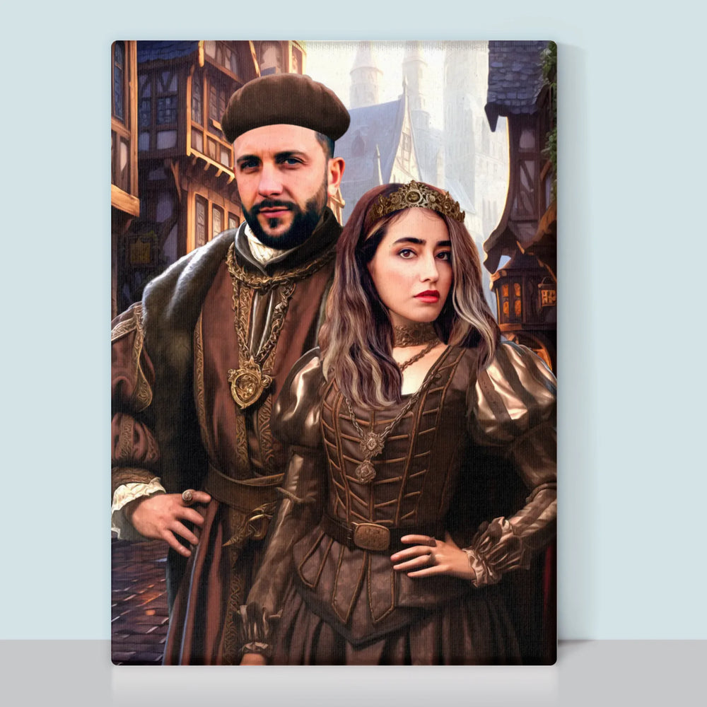 Królewski Portret: Szlachecka Para - Wydruk obramowany - Pion