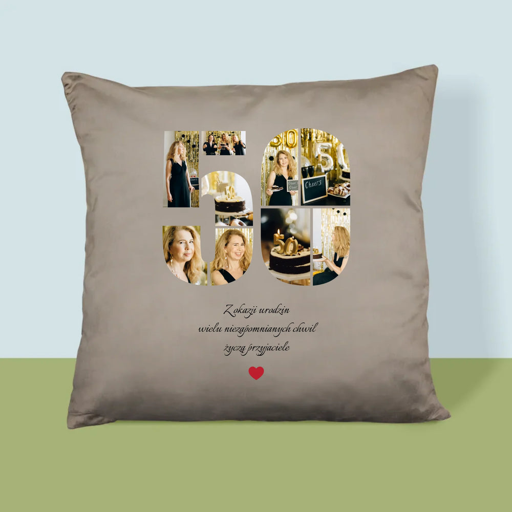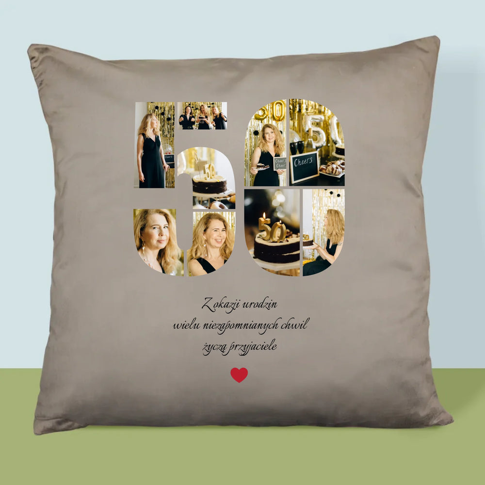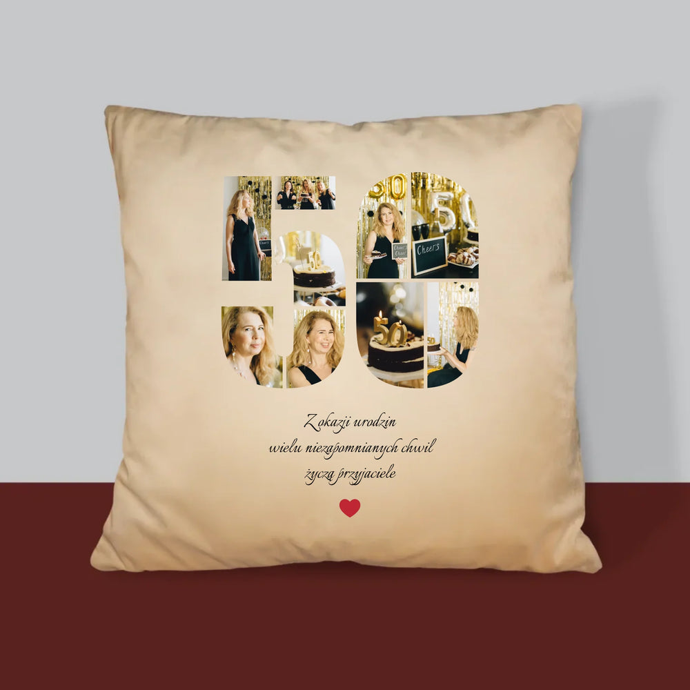 Kształt Ze Zdjęć: 50 Urodziny Życzenia - Poduszka z Nadrukiem