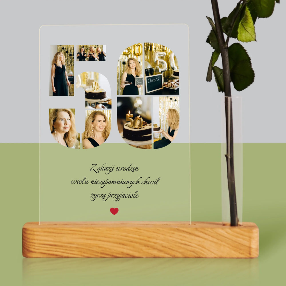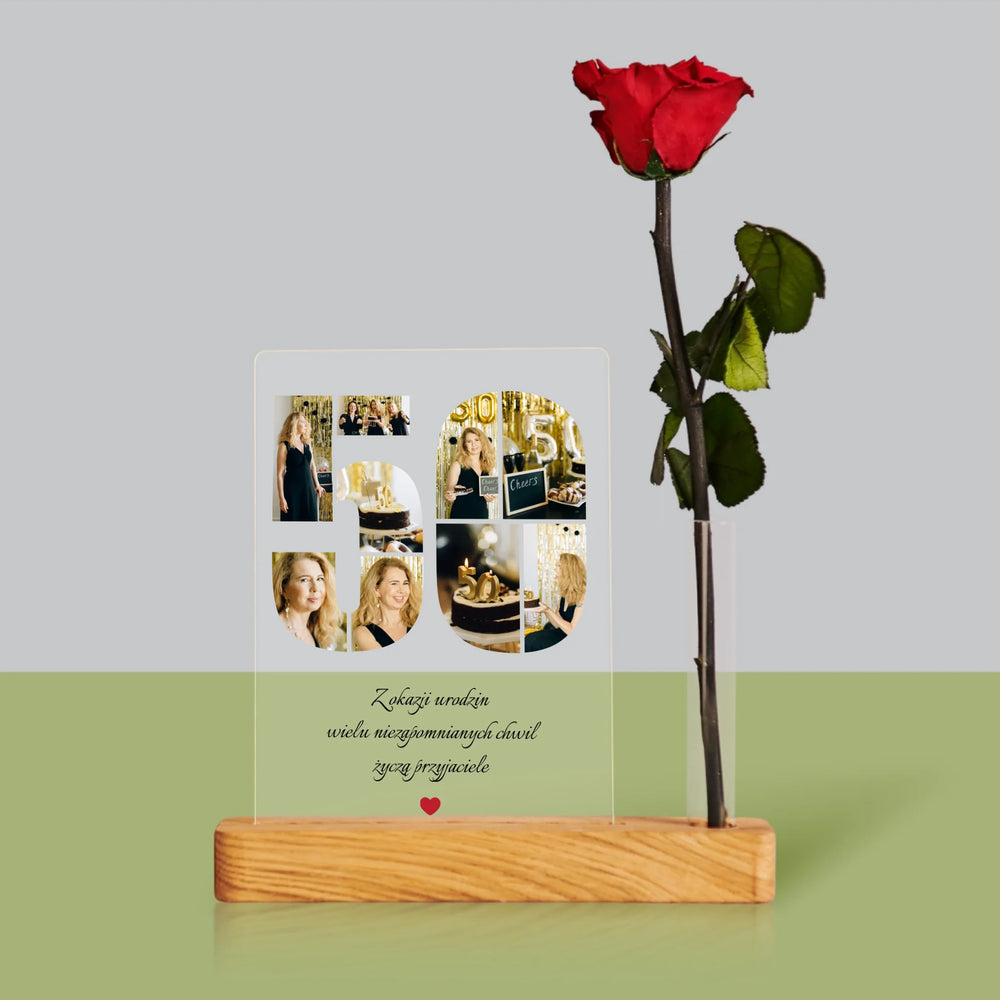 Kształt Ze Zdjęć: 50 Urodziny Życzenia - Wydruk na szkle akrylowym z różą