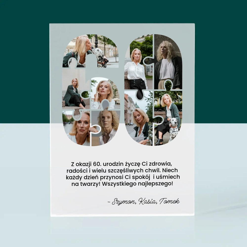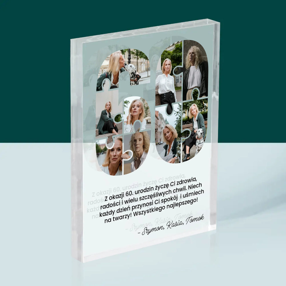 Kształt Ze Zdjęć: 60 Urodziny Puzzle - Blok Akrylowy z Nadrukiem