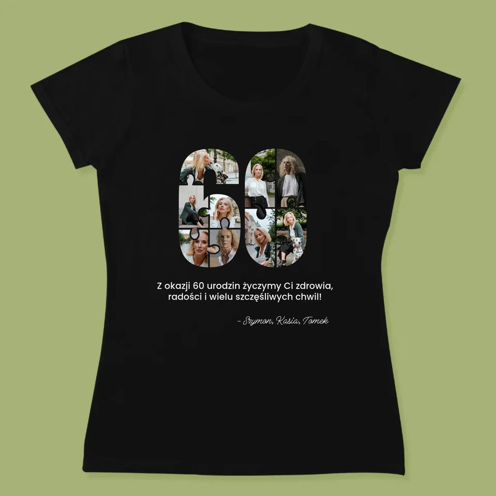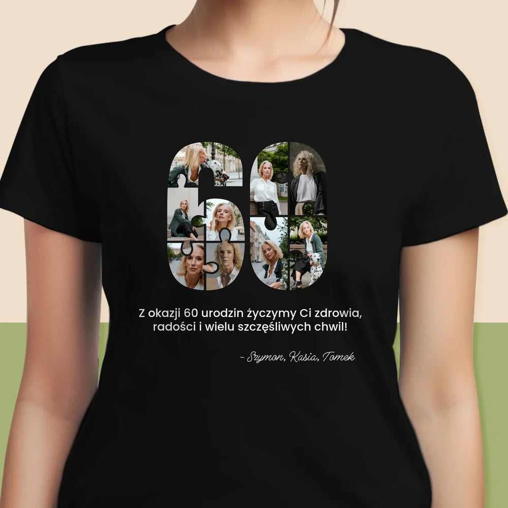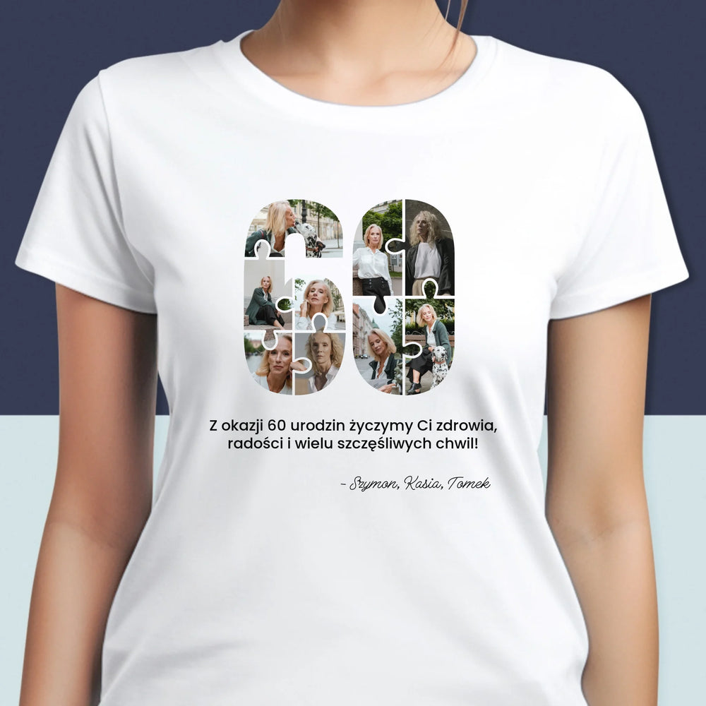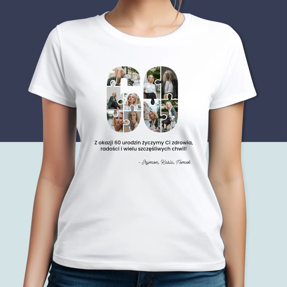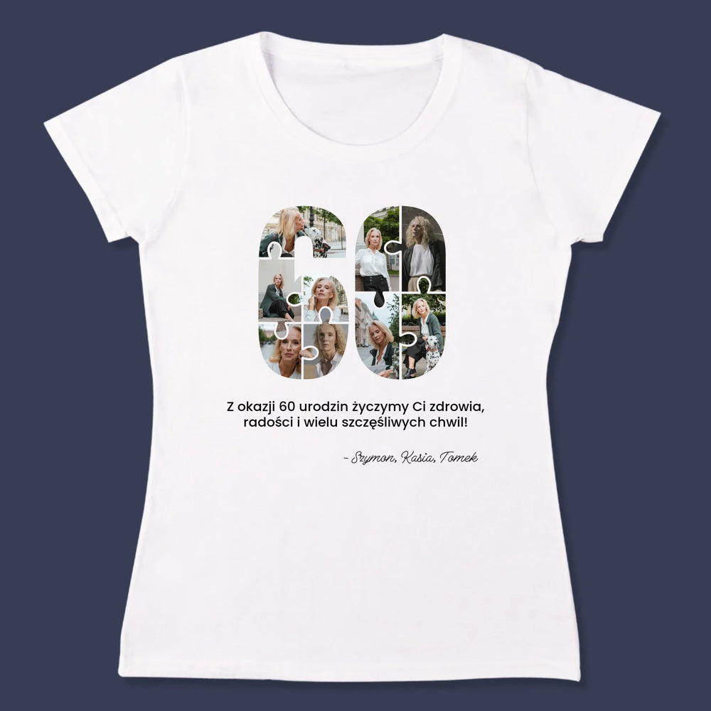 Kształt Ze Zdjęć: 60 Urodziny Puzzle - Personalizowana Koszulka Damska