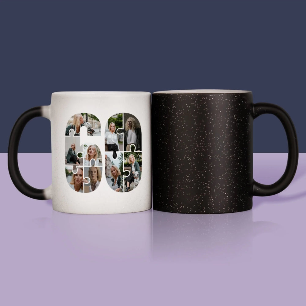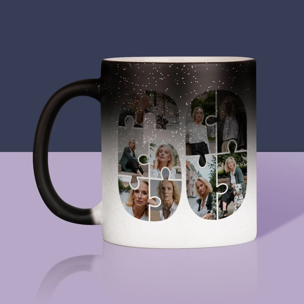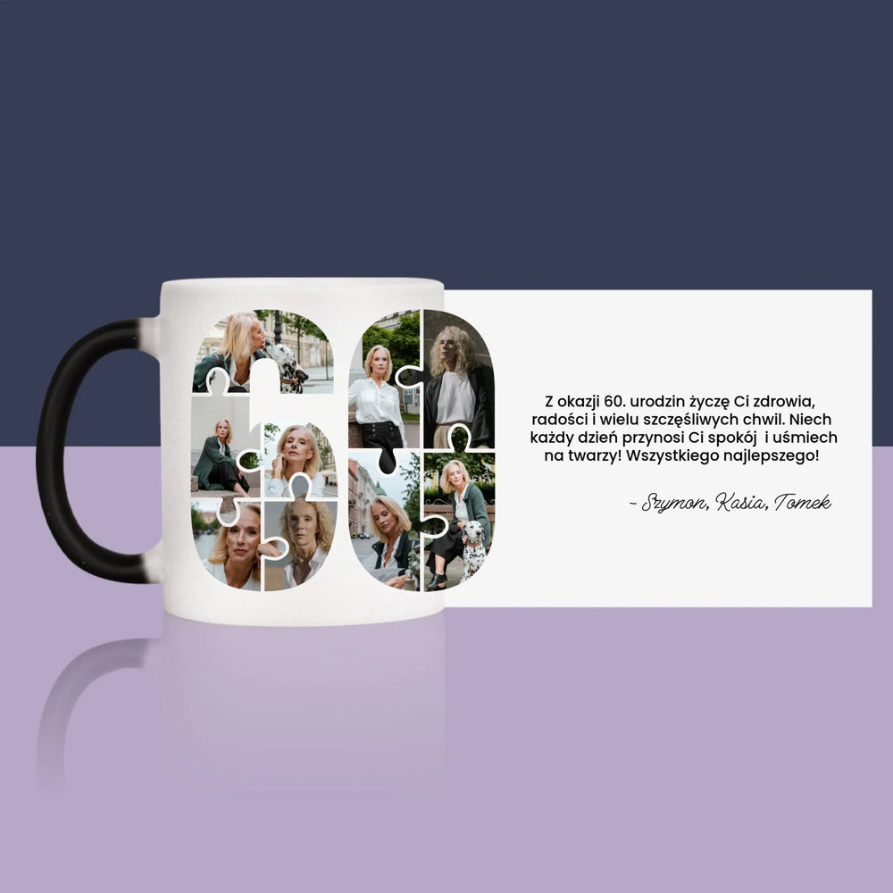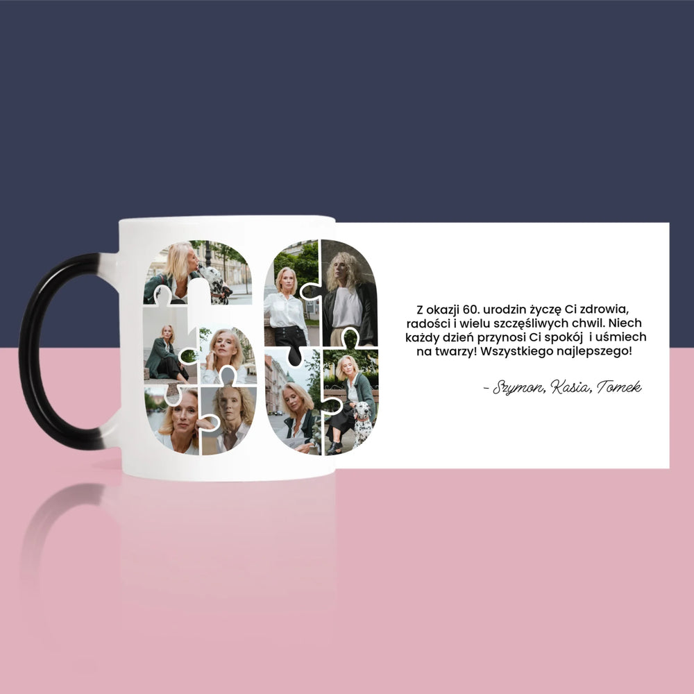 Kształt Ze Zdjęć: 60 Urodziny Puzzle - Magiczny kubek z brokatem