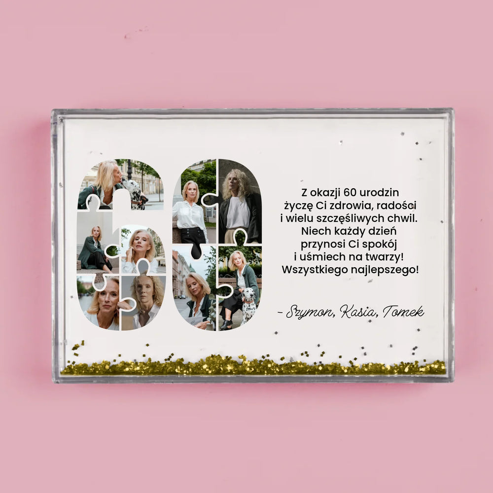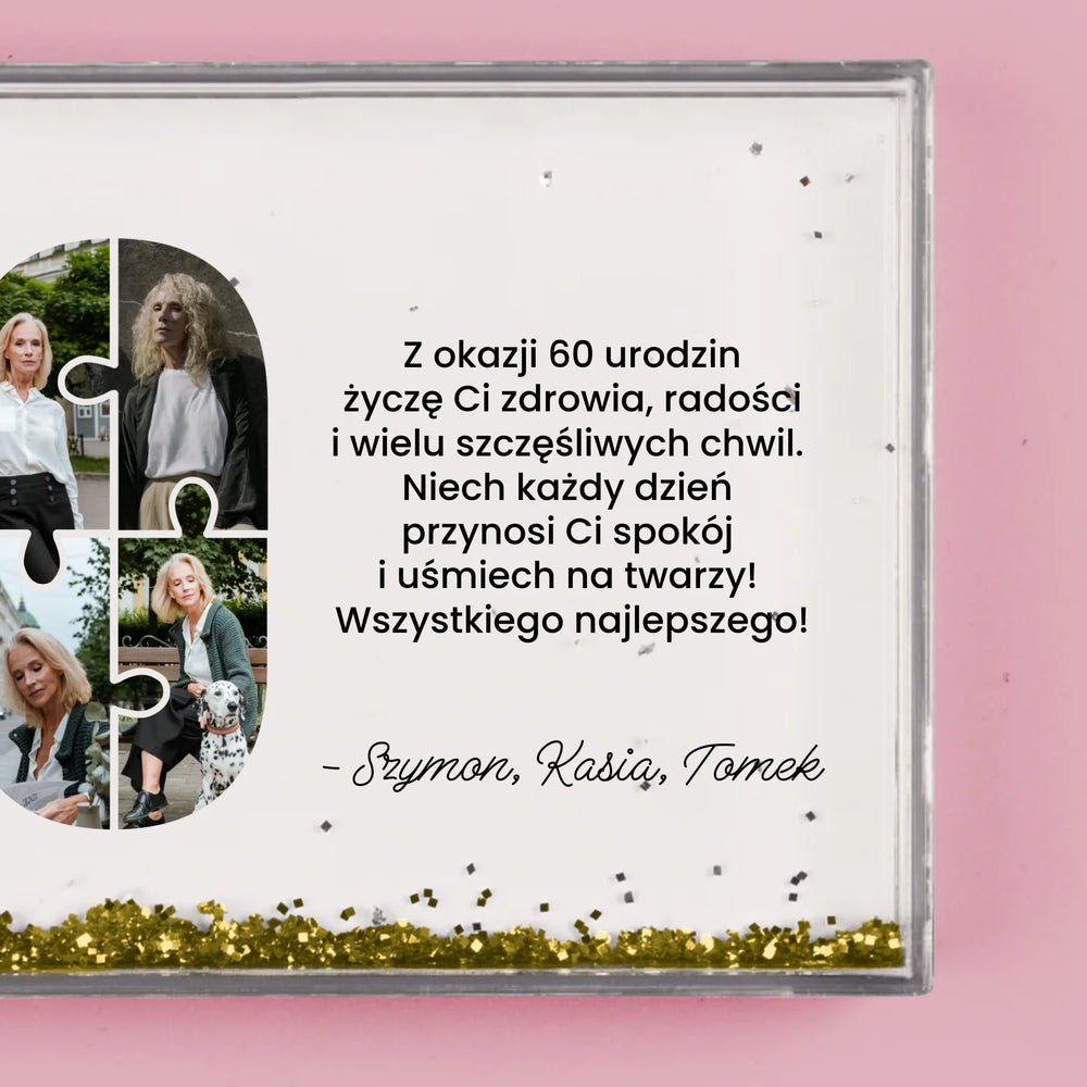 Kształt Ze Zdjęć: 60 Urodziny Puzzle - Personalizowana Ramka Wodna