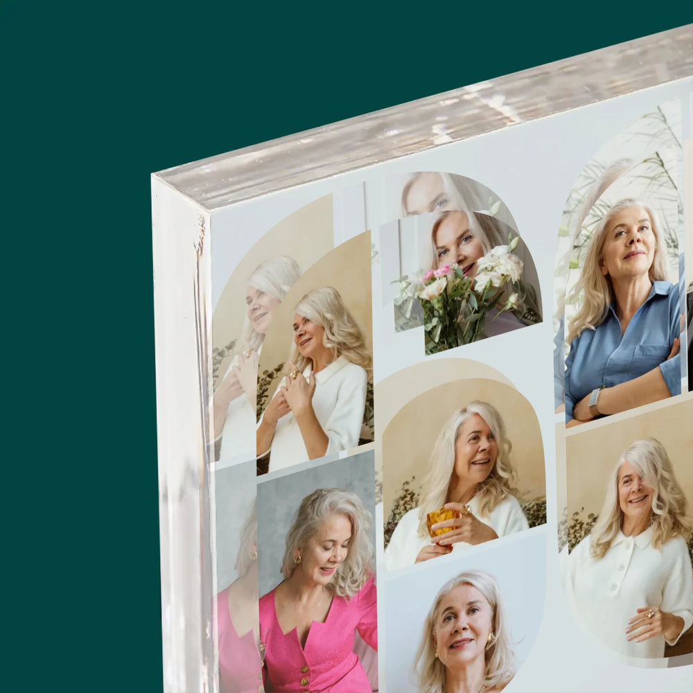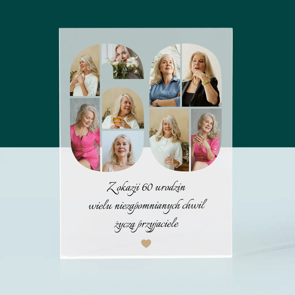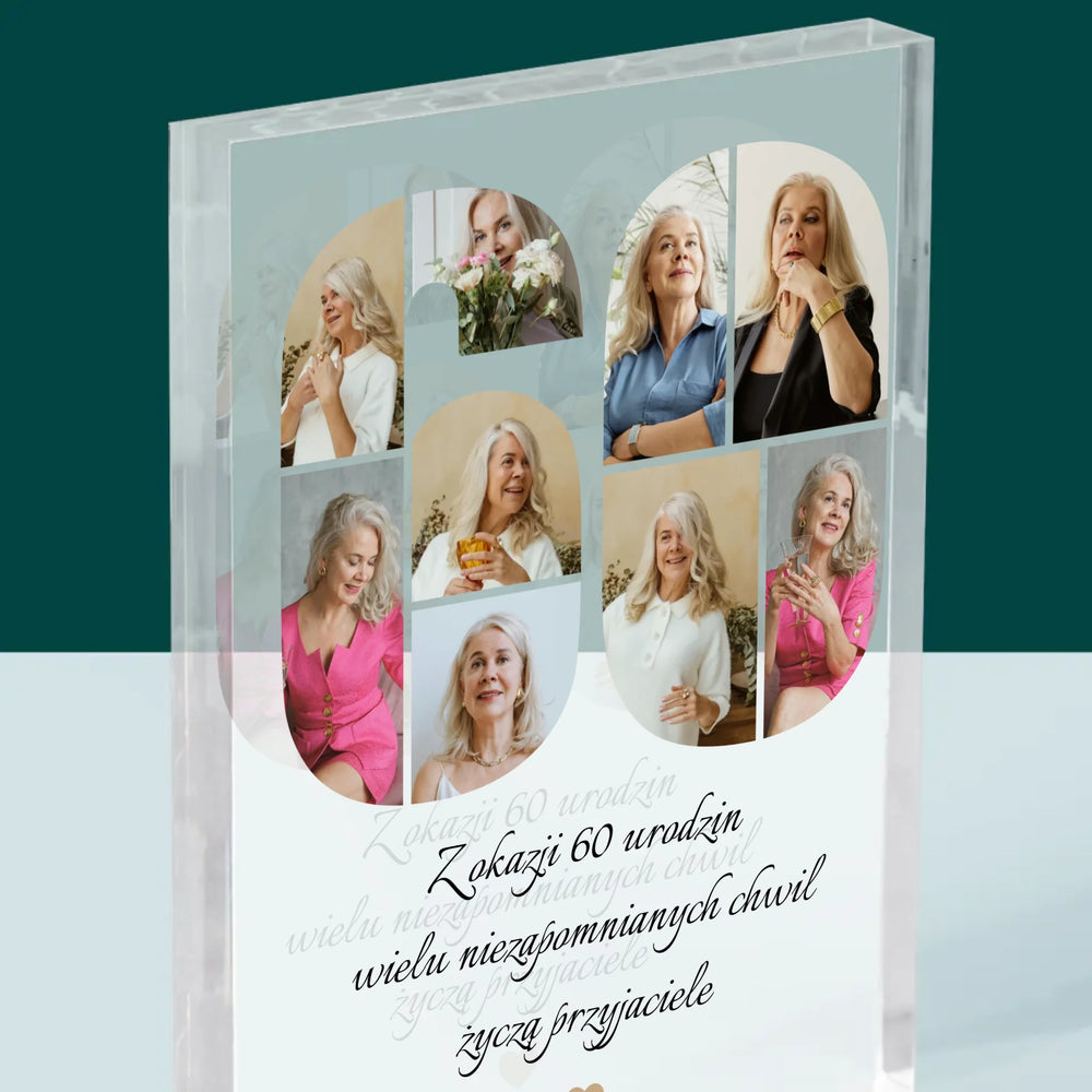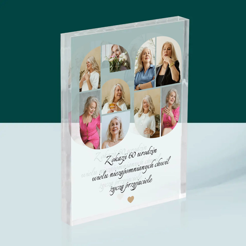 Kształt Ze Zdjęć: 60 Urodziny Życzenia - Blok Akrylowy z Nadrukiem