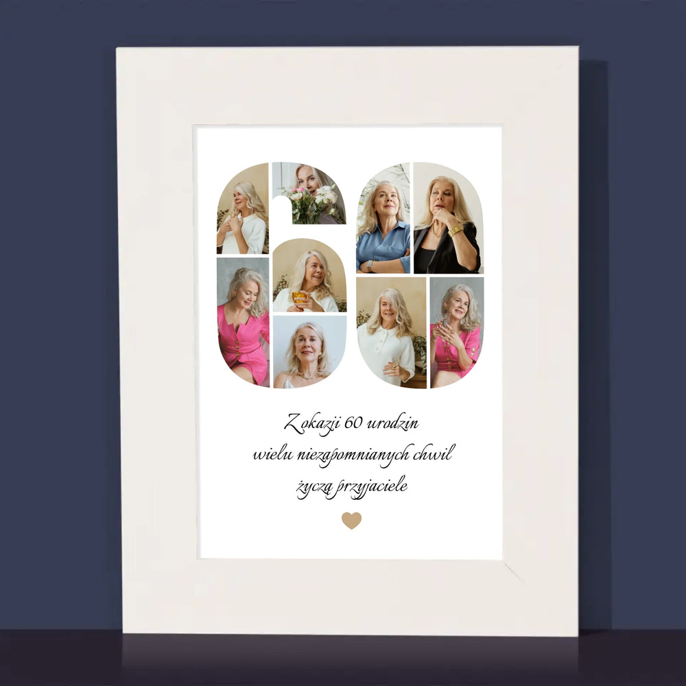 Kształt Ze Zdjęć: 60 Urodziny Życzenia - Ramka na Zdjęcia z Nadrukiem