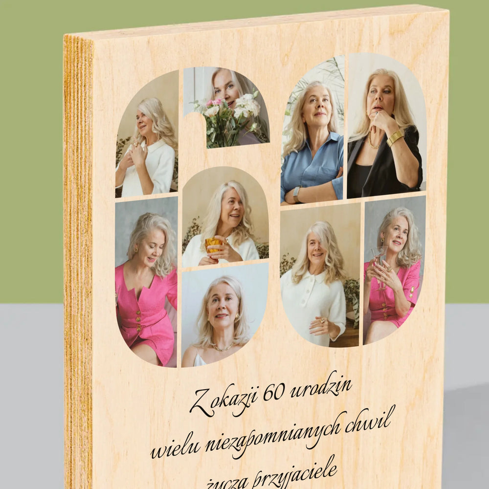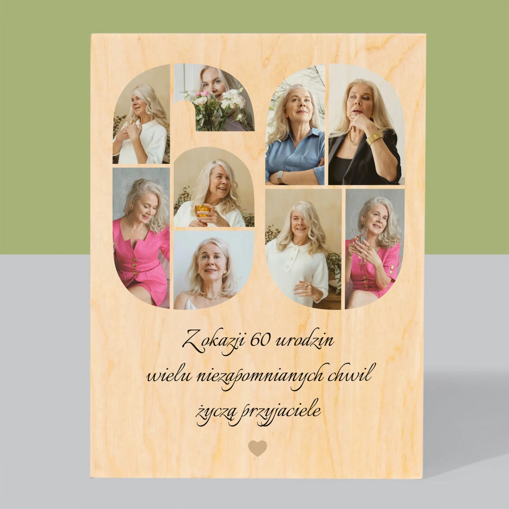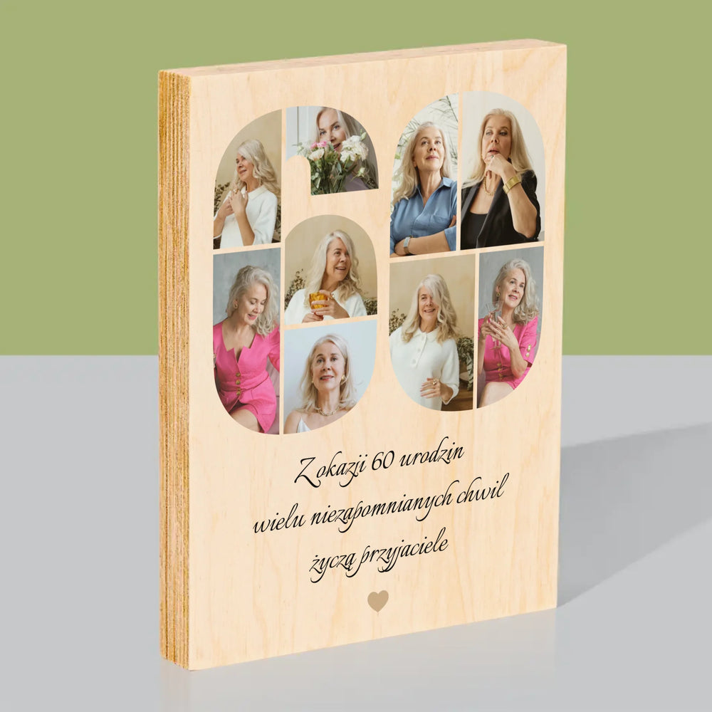 Kształt Ze Zdjęć: 60 Urodziny Życzenia - Wydruk na drewnie - Pion