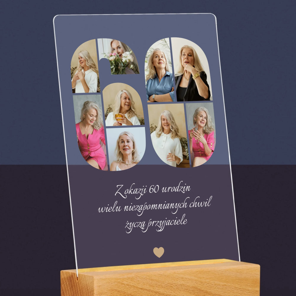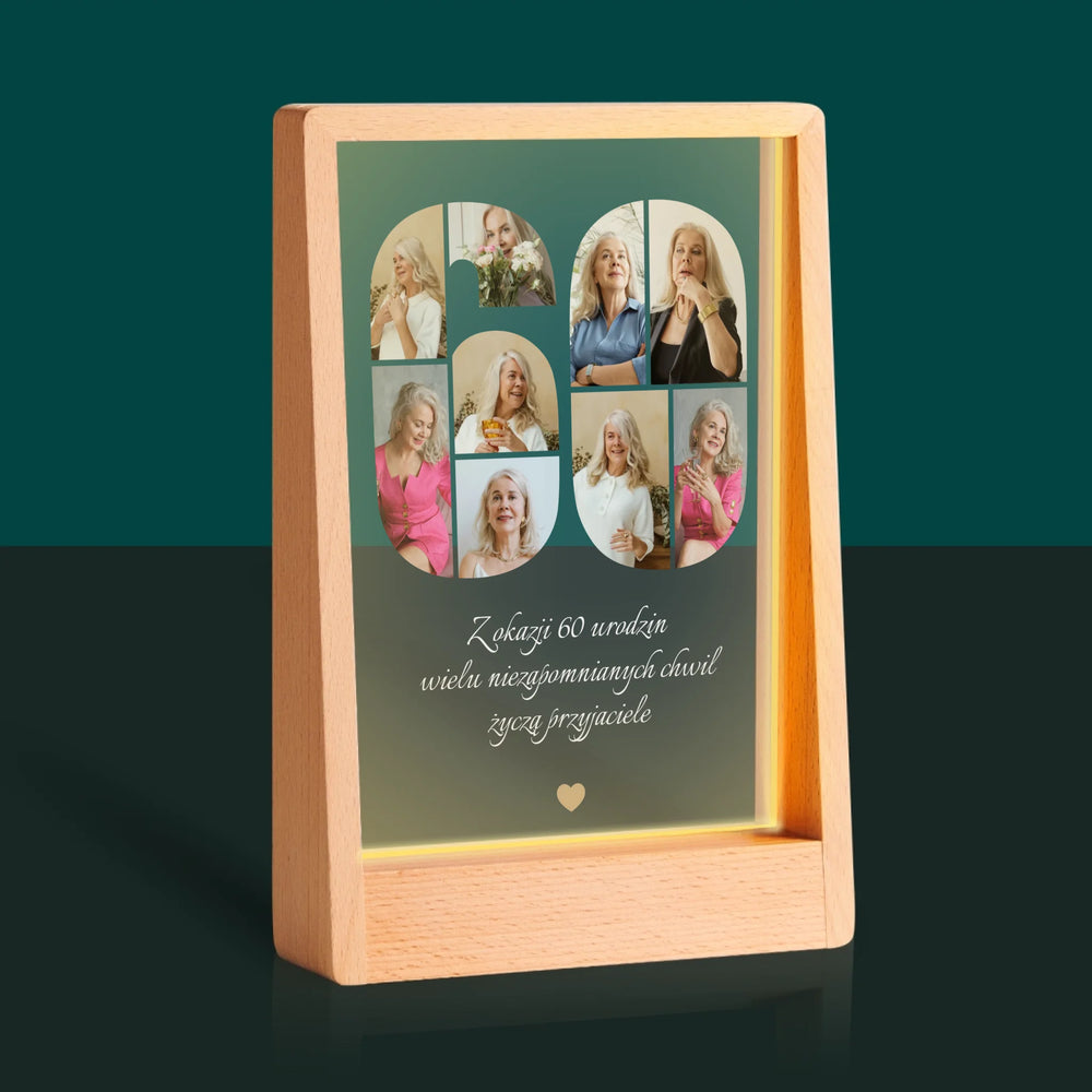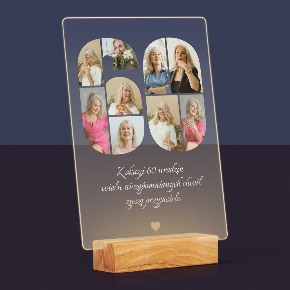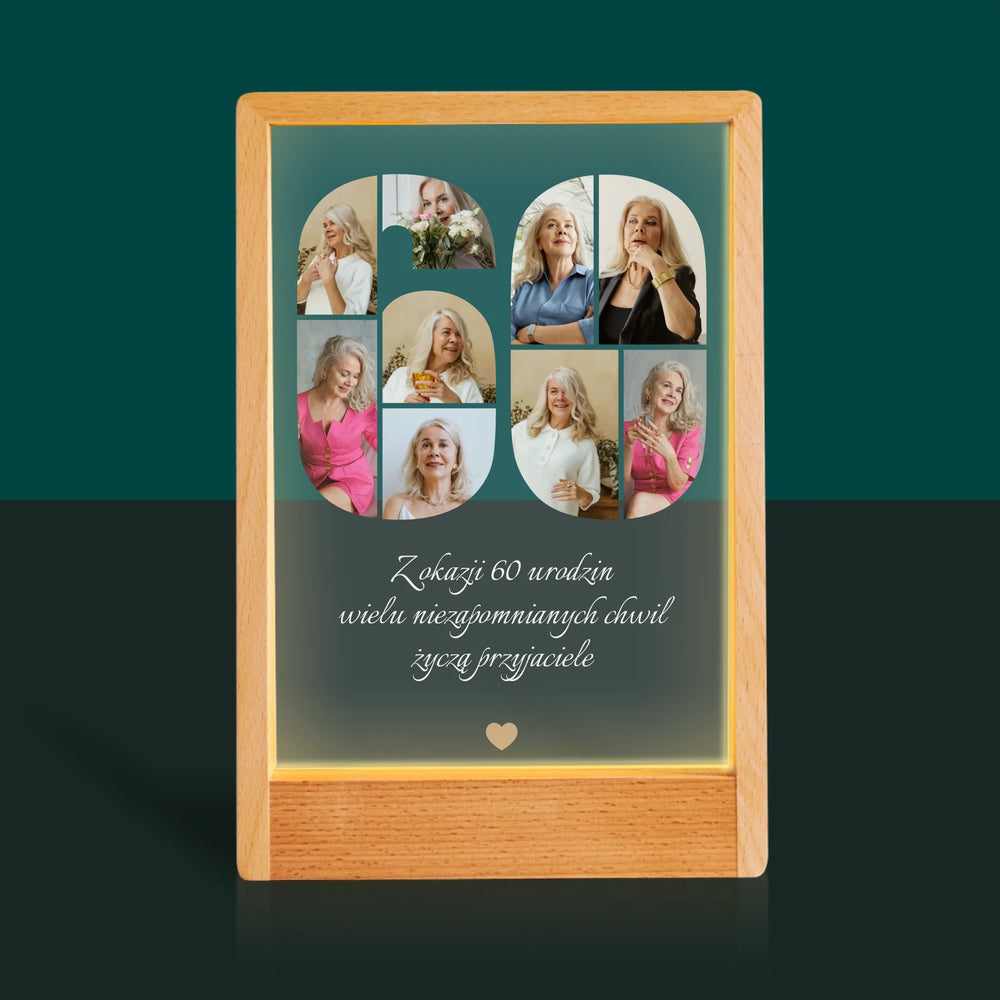 Kształt Ze Zdjęć: 60 Urodziny Życzenia - Wydruk na szkle akrylowym w ramce LED