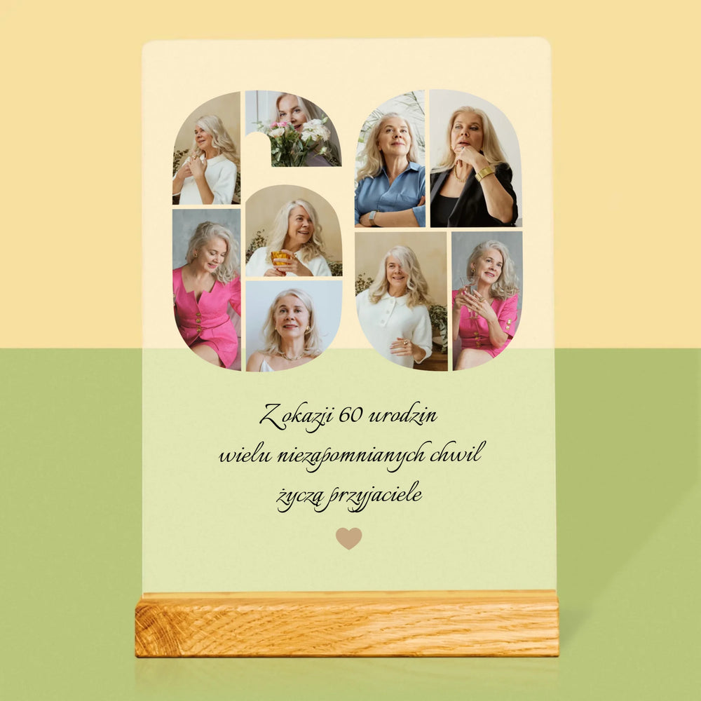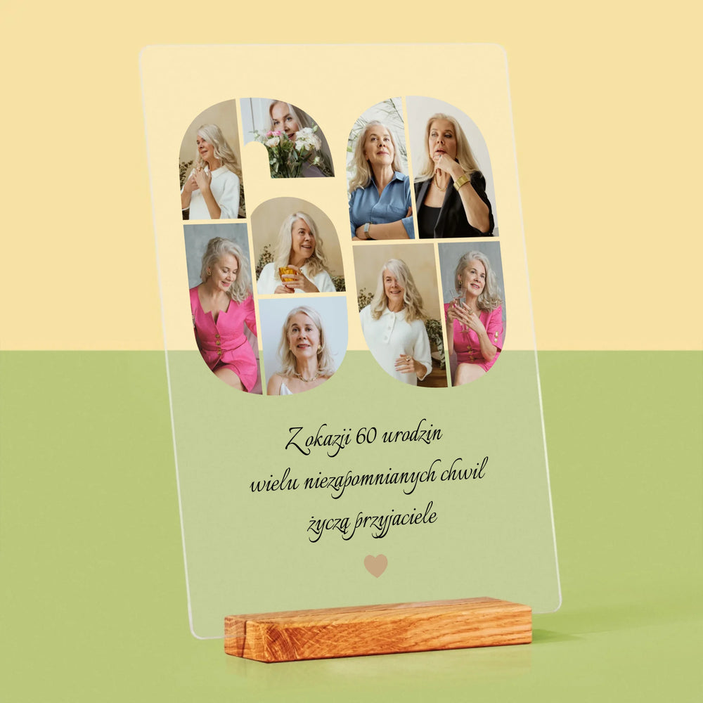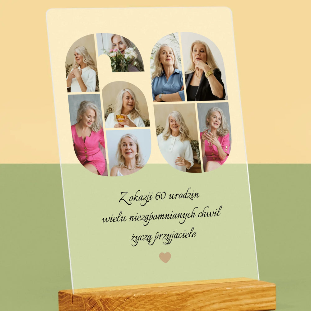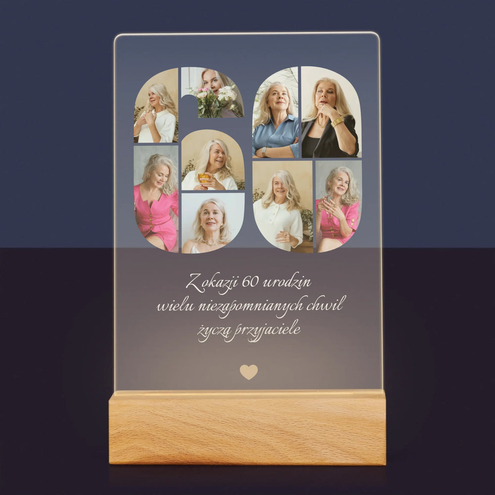 Kształt Ze Zdjęć: 60 Urodziny Życzenia - Wydruk na szkle akrylowym w ramce LED