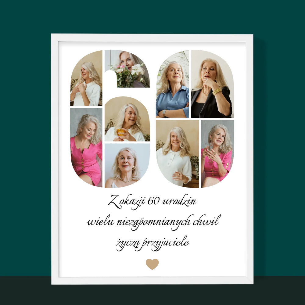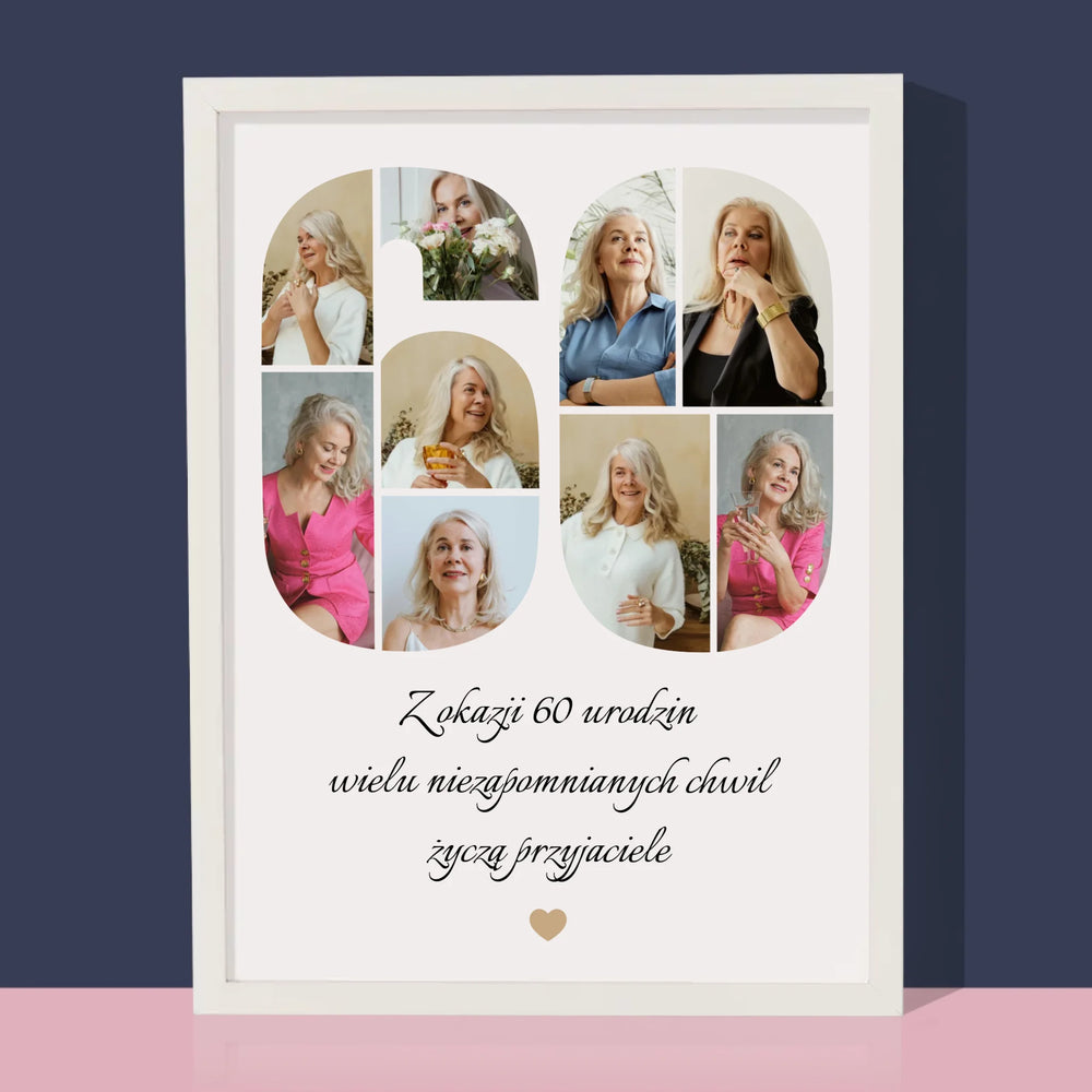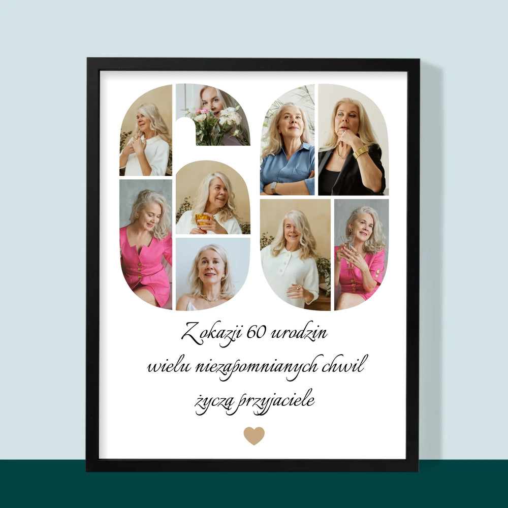 Kształt Ze Zdjęć: 60 Urodziny Życzenia - Wydruk obramowany - Pion