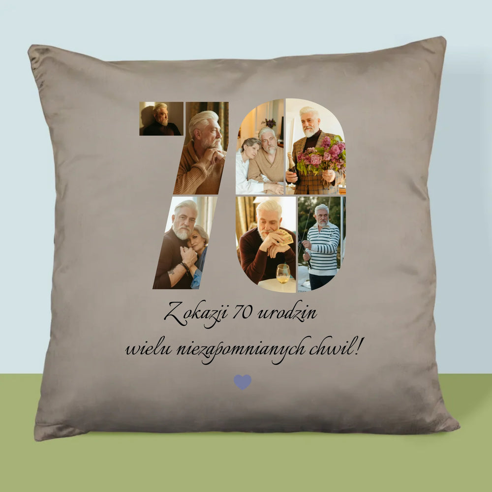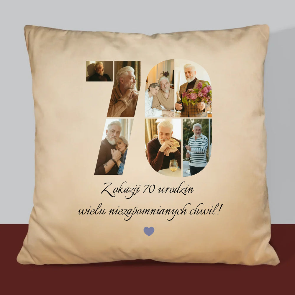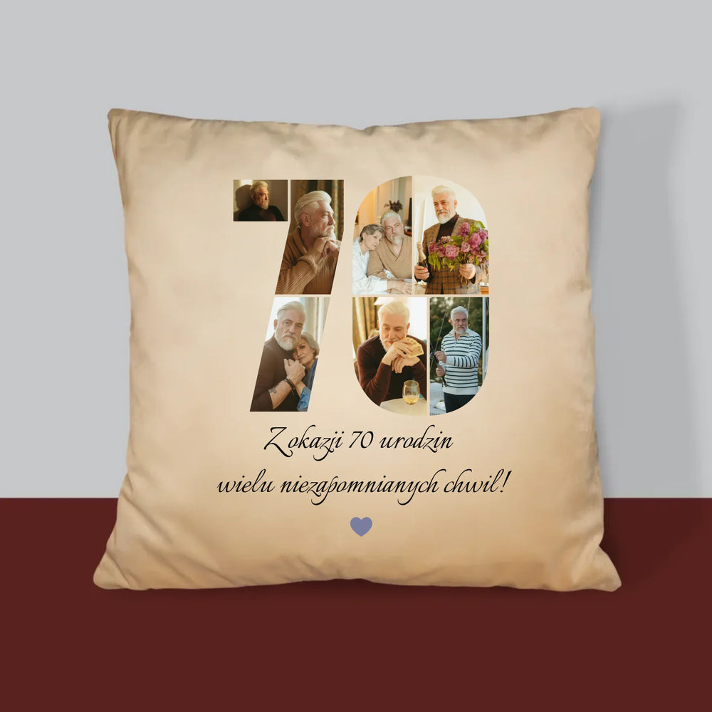 Kształt Ze Zdjęć: 70 Urodziny Życzenia - Poduszka z Nadrukiem