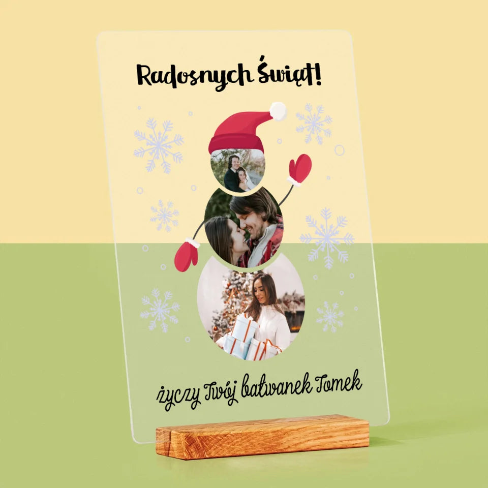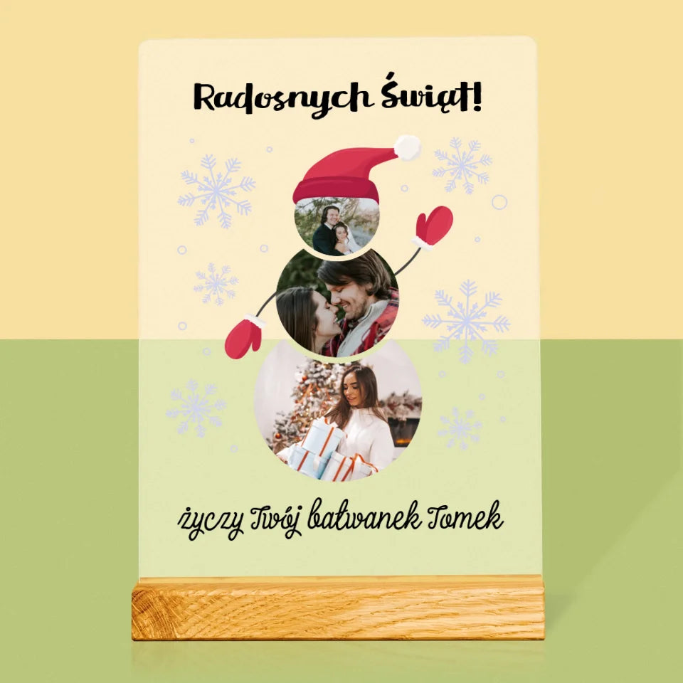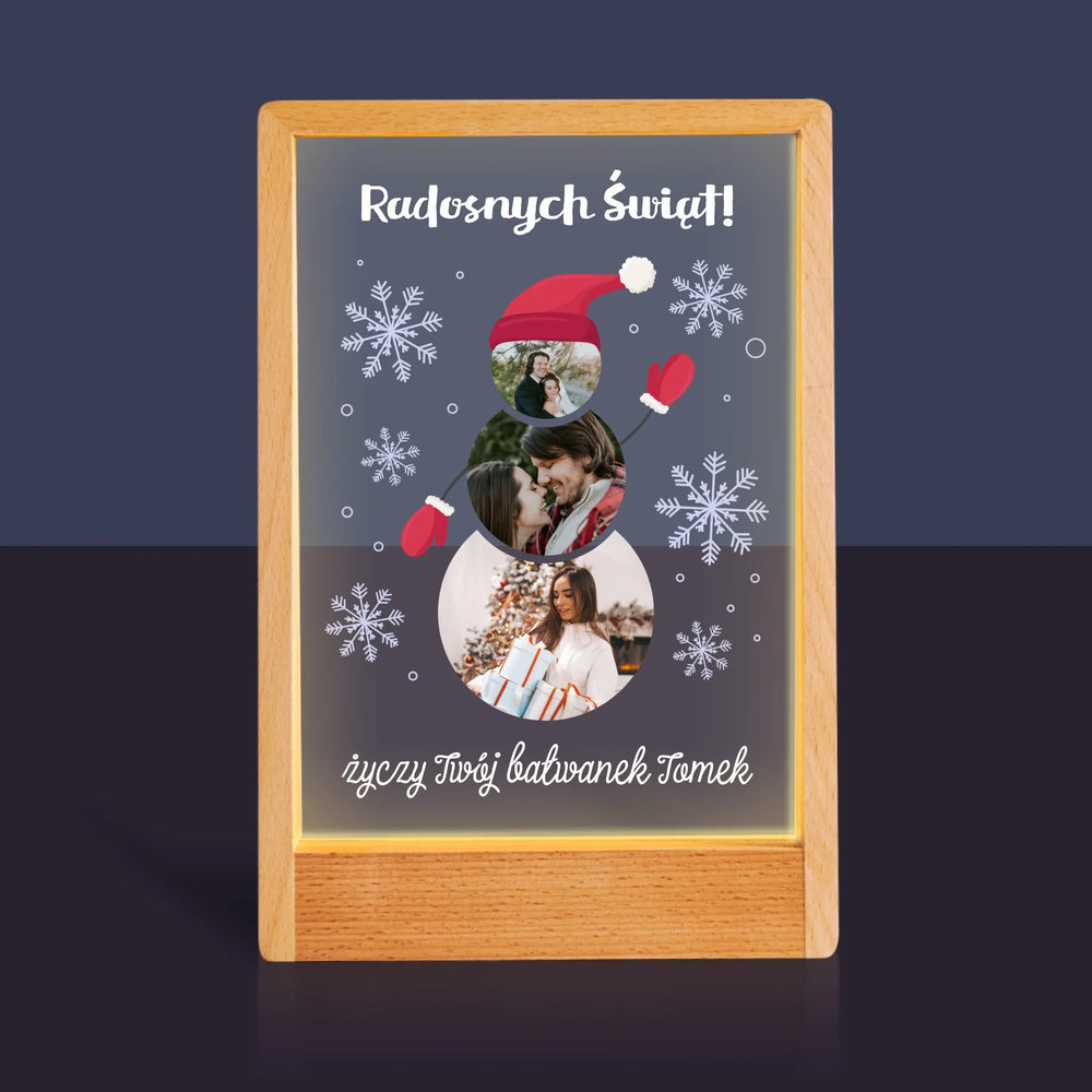 Kształt Ze Zdjęć: Bałwanek - Wydruk na szkle akrylowym w ramce LED